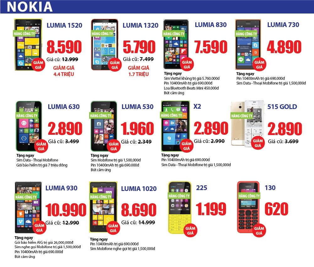 - iPad mini 2 16 GB 4G: 11,4 triệu đồng (giá niêm yết: 12,4 triệu đồng) khuyến mại trị giá 1,6 triệu đồng.