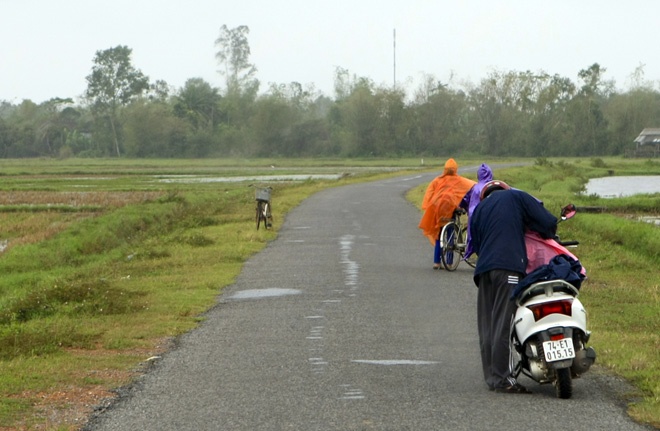 16h30, mưa ở Quảng Trị bắt đầu nặng hạt, gió đã mạnh lên.