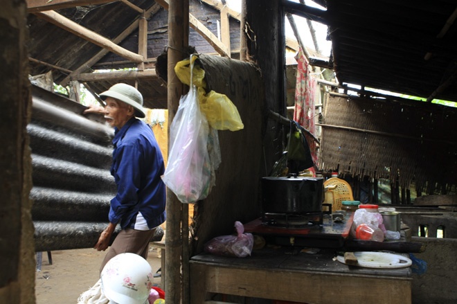 | Ông Táo, 80 tuổi, ở xã Hải Vĩnh (Hải Lăng, Quảng Trị), xã nghèo và trũng nhất tỉnh đã thay vì gia cố nhà đã tiến hành dỡ mái tôn và vách nhằm tránh thiệt hại do siêu bão. |
