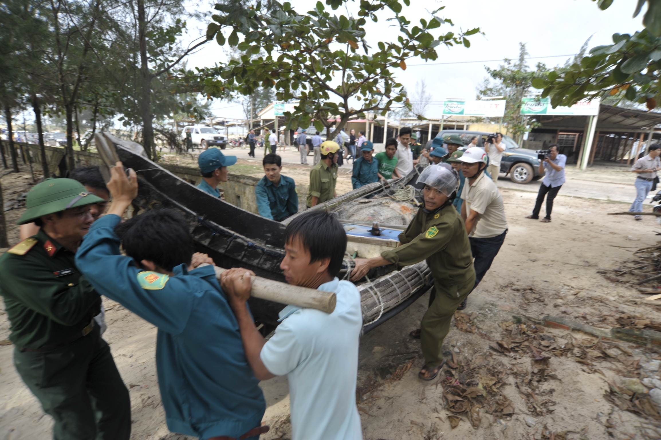 | 19h tối nay ở đây sơ tán, thu thuyền lên bờ. Có 284 thuyền sẽ được công an và bộ đội kéo lê. |