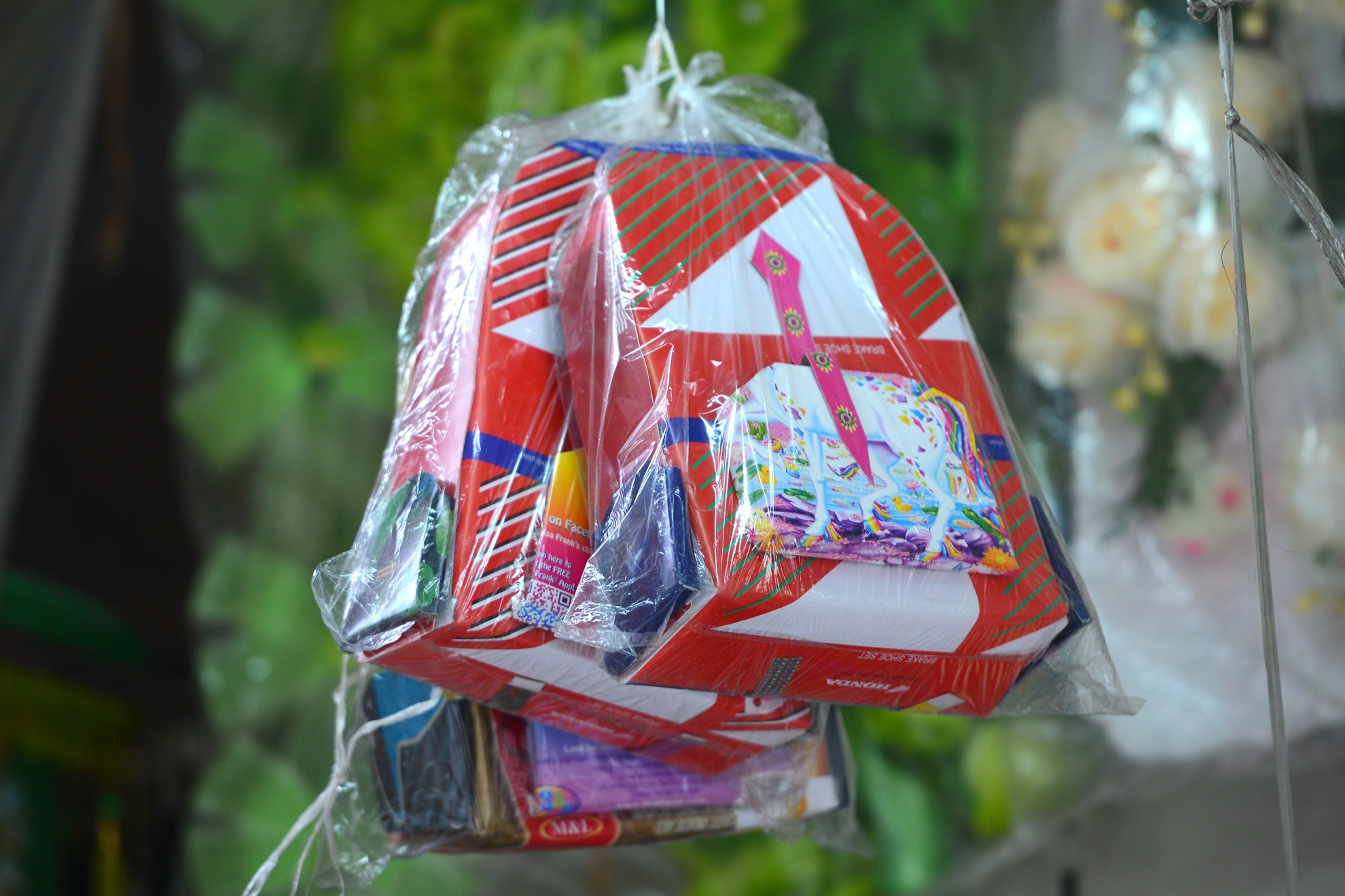 | Đồng phục học sinh cho trẻ em dưới cõi âm. Mỗi bộ có giá 50.000 đồng. |