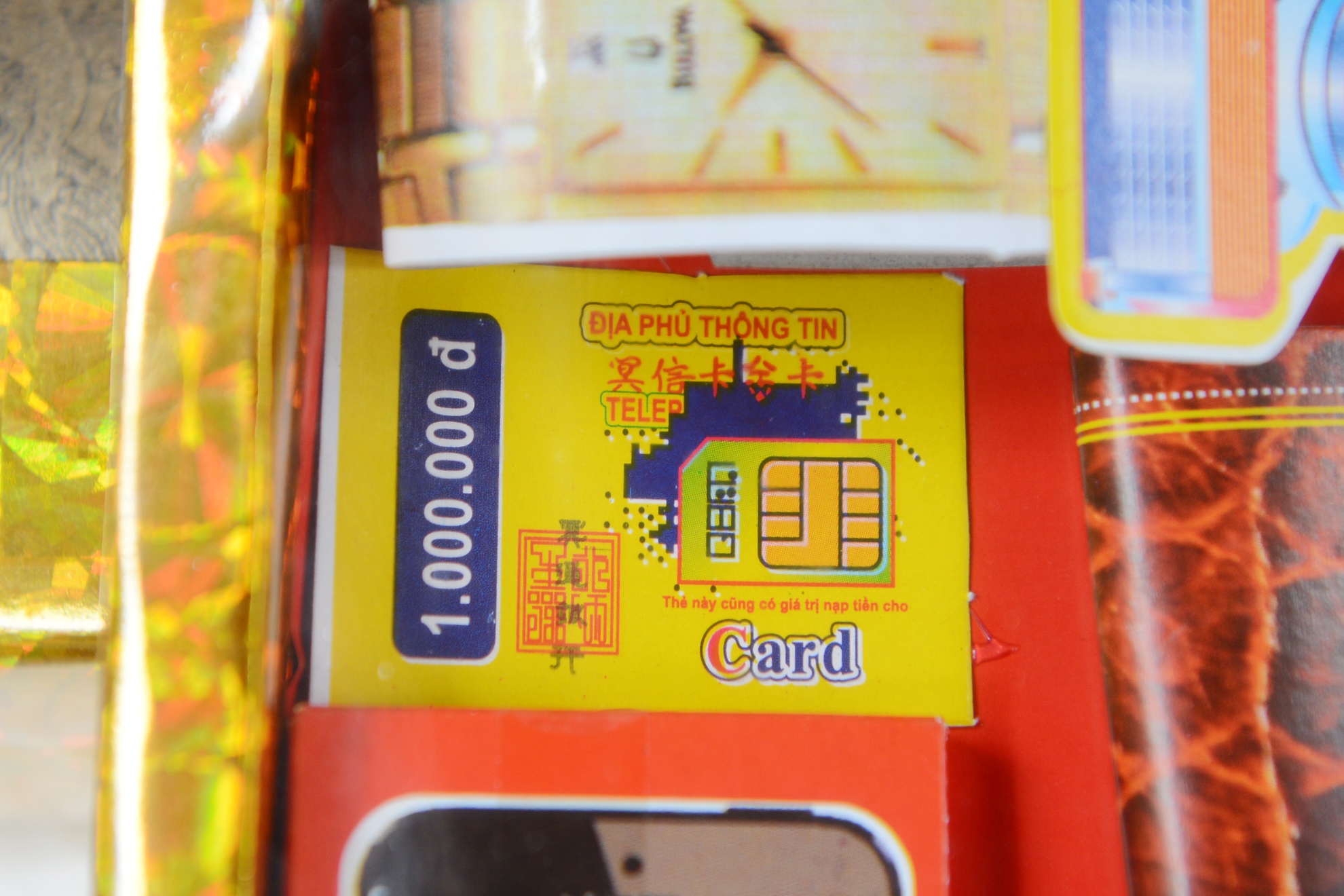Người trần gian dùng thẻ cào nạp tiền chỉ 500.000 đồng là cao nhất còn các nhà sản xuất hàng cho âm phủ dùng hẳn mệnh giá 1 triệu đồng. Hơn thế, sim đi kèm cùng thẻ nạp tiền để hóa vàng cho tiện.