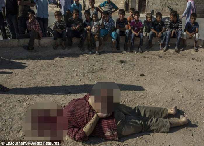 Không chỉ có sự bạo lực trong các màn hành quyết, sự tàn bạo của phiến quân Syria còn thể hiện ở việc họ bắt trẻ em chứng kiến những cảnh đổ máu ghê rợn.