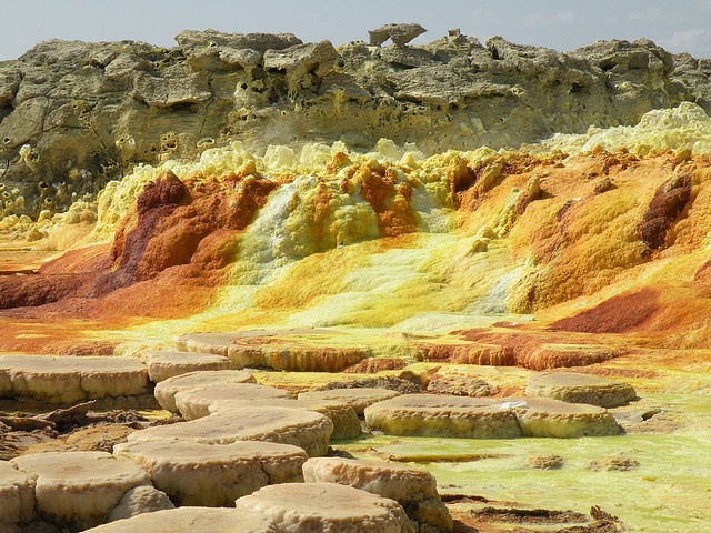 Nằm trong sa mạc Danokil, ở phía đông bắc Ethiopia là miệng núi lửa Dallol được xem là một khu vực khá bất thường, ít được biết đến và hiếm người viếng thăm.