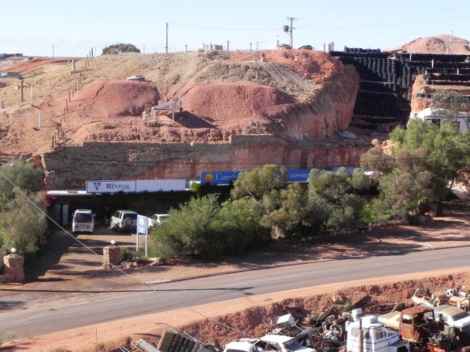 | Giờ đây, "thủ đô thế giới về đá quý opal" (cung cấp 90% sản lượng opal cho thị trường thế giới) cách Adelaide 846 km về phía bắc, là một trong những điểm hút khách nhất vùng này bởi sức hấp dẫn từ những sinh hoạt thường nhật không chỉ diễn ra trên mặt đất. Một góc lộ thiên của thị trấn Coober Pedy. Ảnh: Lazerhorse. |