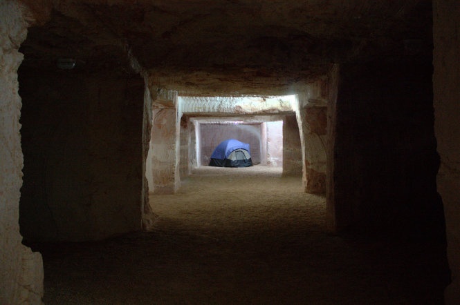 | Thời gian sau, những công trình ngầm như nhà ở, giáo đường, thư viện, nhà trọ và thậm chí cả khu cắm trại được xây dựng trong lòng đất phục vụ nhu cầu cho những người chọn Coober Pedy làm nơi sống. Một lối vào thị trấn Coober Pedy ngầm trong lòng đất. Ảnh: Wordpress. |