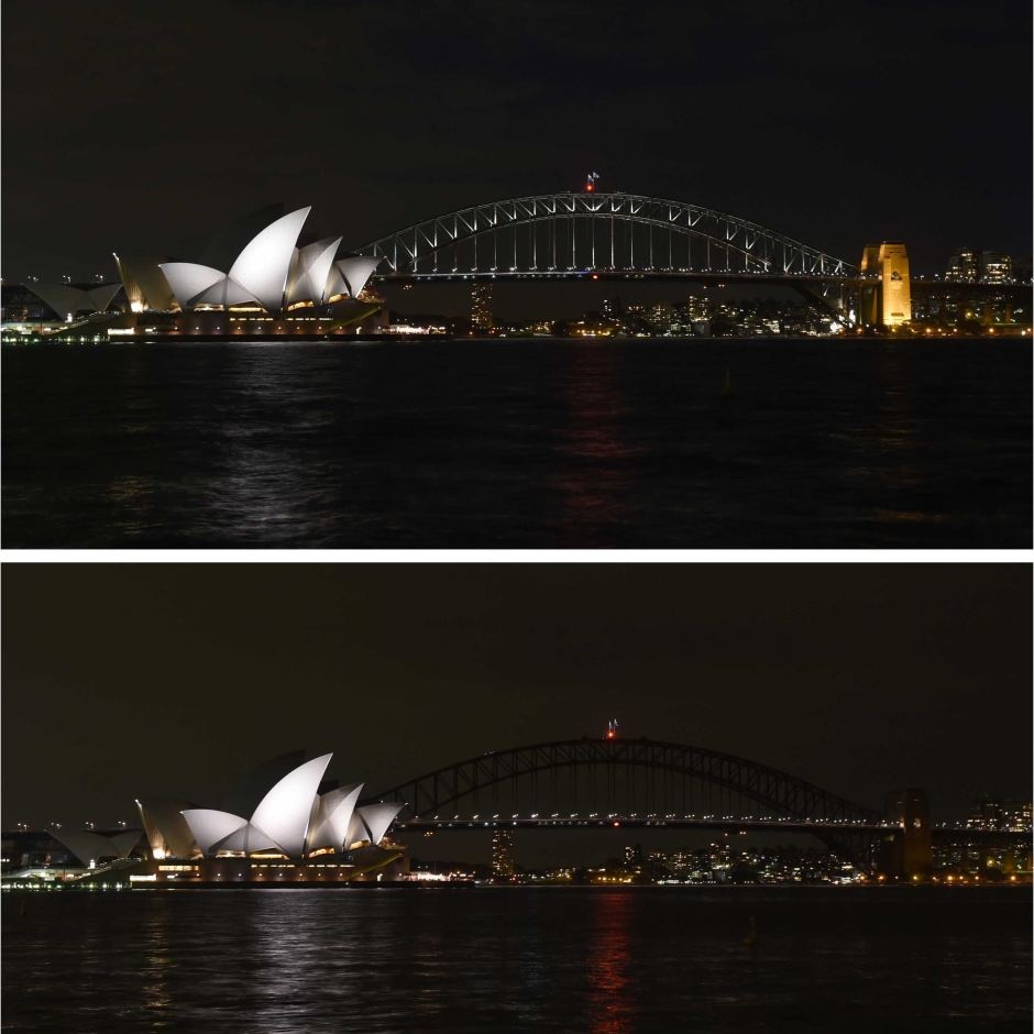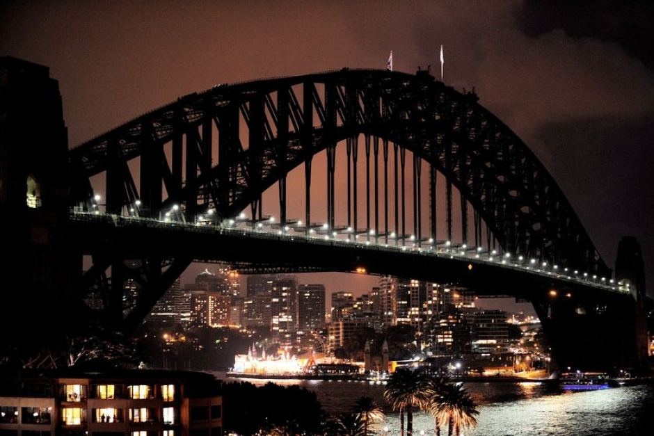 Giờ Trái đất là sự kiện quốc tế hàng năm do Quỹ Quốc tế Bảo vệ Thiên nhiên (WWF) khởi xướng, kêu gọi mọi người tắt các thiết bị điện không thực sự cần thiết vào lúc 20h30 đến 21h30 ngày thứ bảy cuối cùng trong tháng 3 hàng năm. Cầu Harbour ở Sydney tắt đèn trong Giờ Trái đất năm 2014. Ảnh: abc.net.au |