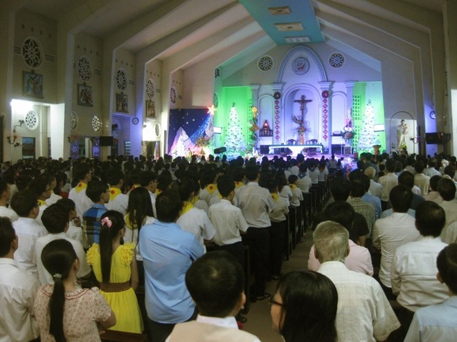 Các thánh đường thành phố Hồ Chí Minh chật cứng con chiên đến làm lễ vào thời khắc thiêng liêng. Ảnh: Zing.