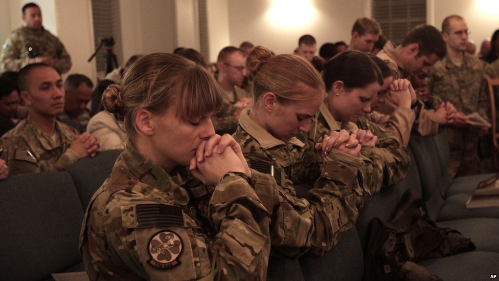 Binh sĩ phương Tây làm nhiệm vụ quốc tế ở Afghanistan đón Giáng sinh ở căn cứ quân sự Bagram, thủ đô Kabul. Ảnh: AP.