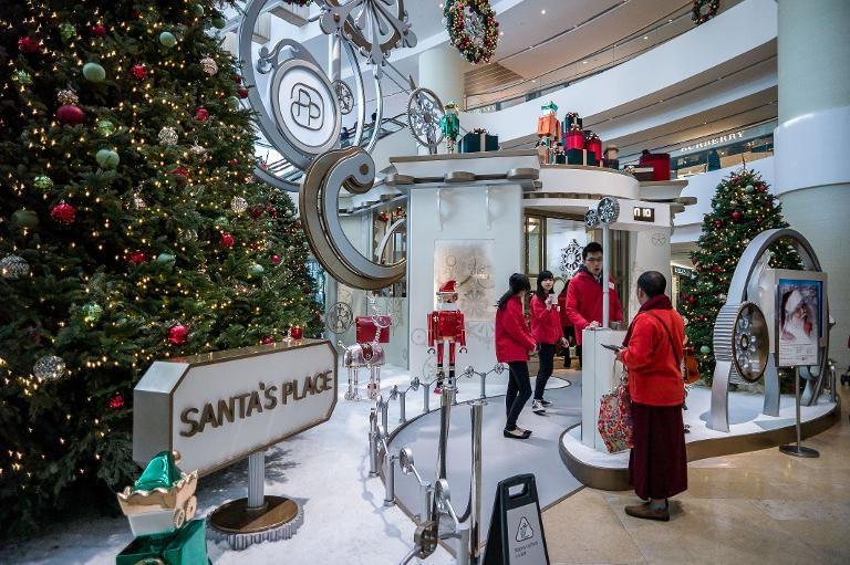 Lễ Giáng sinh tại Hong Kong. Vào dịp này, các trung tâm thương mại lớn nhỏ ở khu vực đều trang hoàng rực rỡ nhằm thu hút khách hàng. Ảnh: AP.