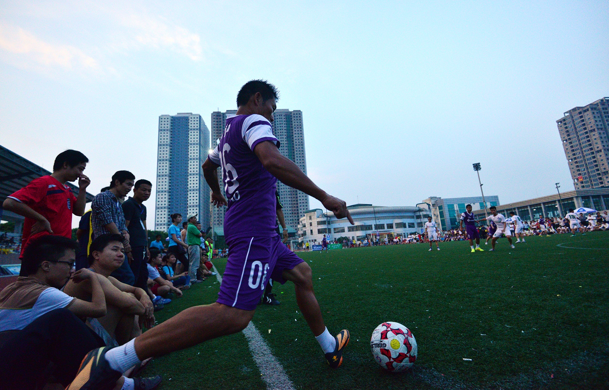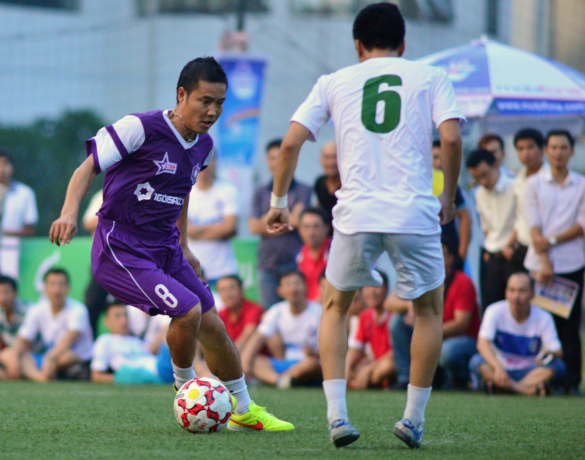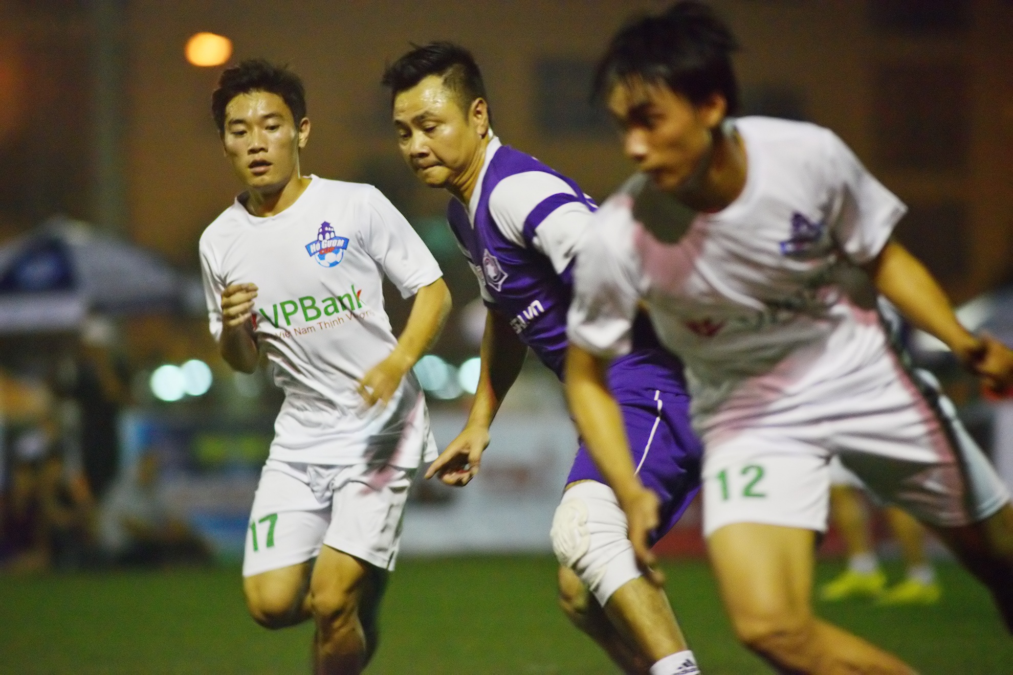 Tuy hơi béo, nhưng tiền đạo Tuấn Thành vẫn giữ được phong độ. Anh cùng với các danh thủ gây nhiều khó khăn cho đội bạn.