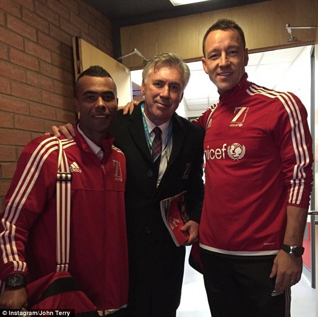 Trung vệ Sol Campbell (ảnh trái) và huấn luyện viên Carlo Ancelotti cũng góp mặt. Cựu danh thủ Arsenal đá dự bị trong trận đấu từ thiện. Trong khi HLV Ancelotti dẫn dắt đội còn lại của những ngôi sao thế giới.