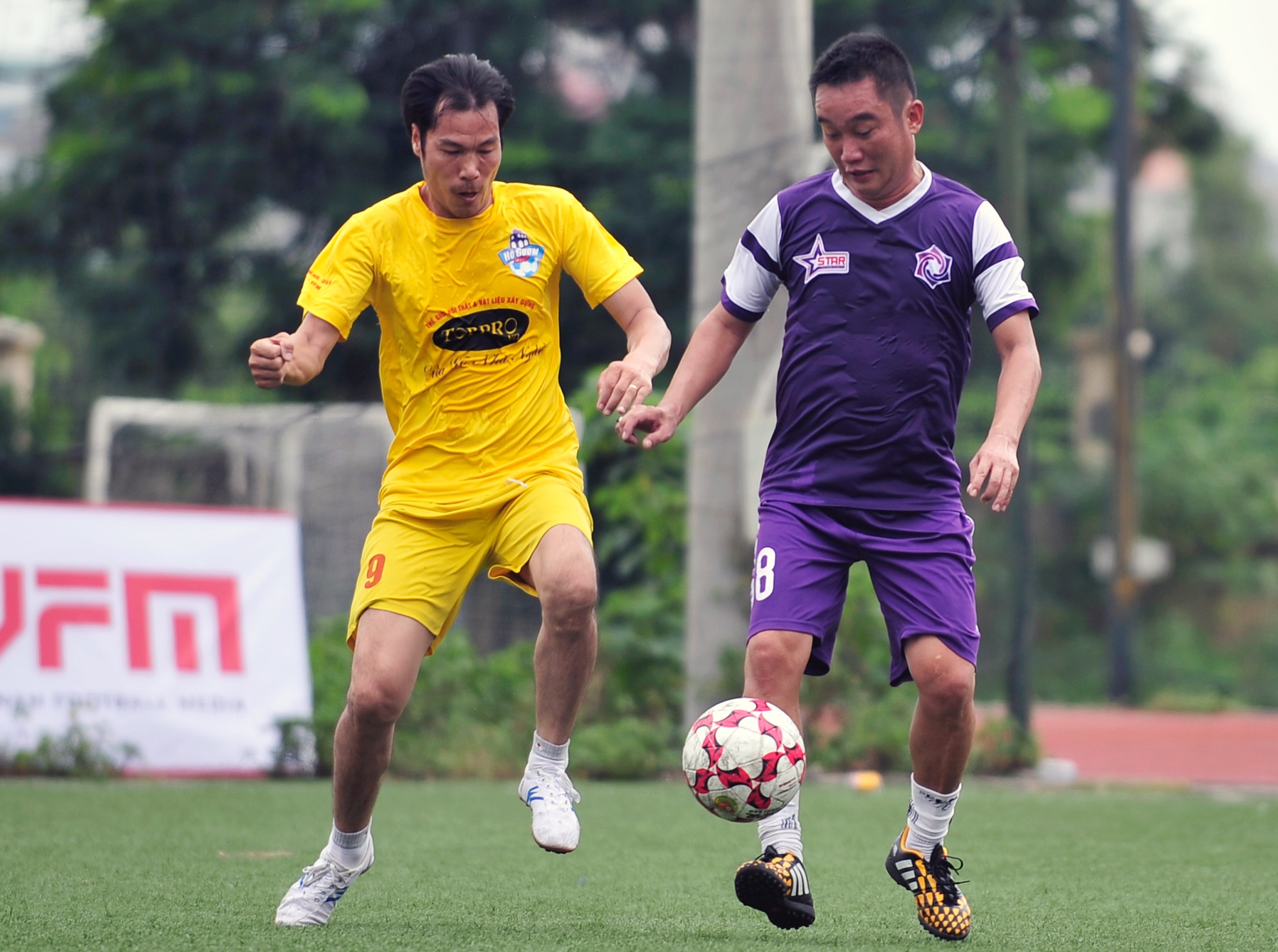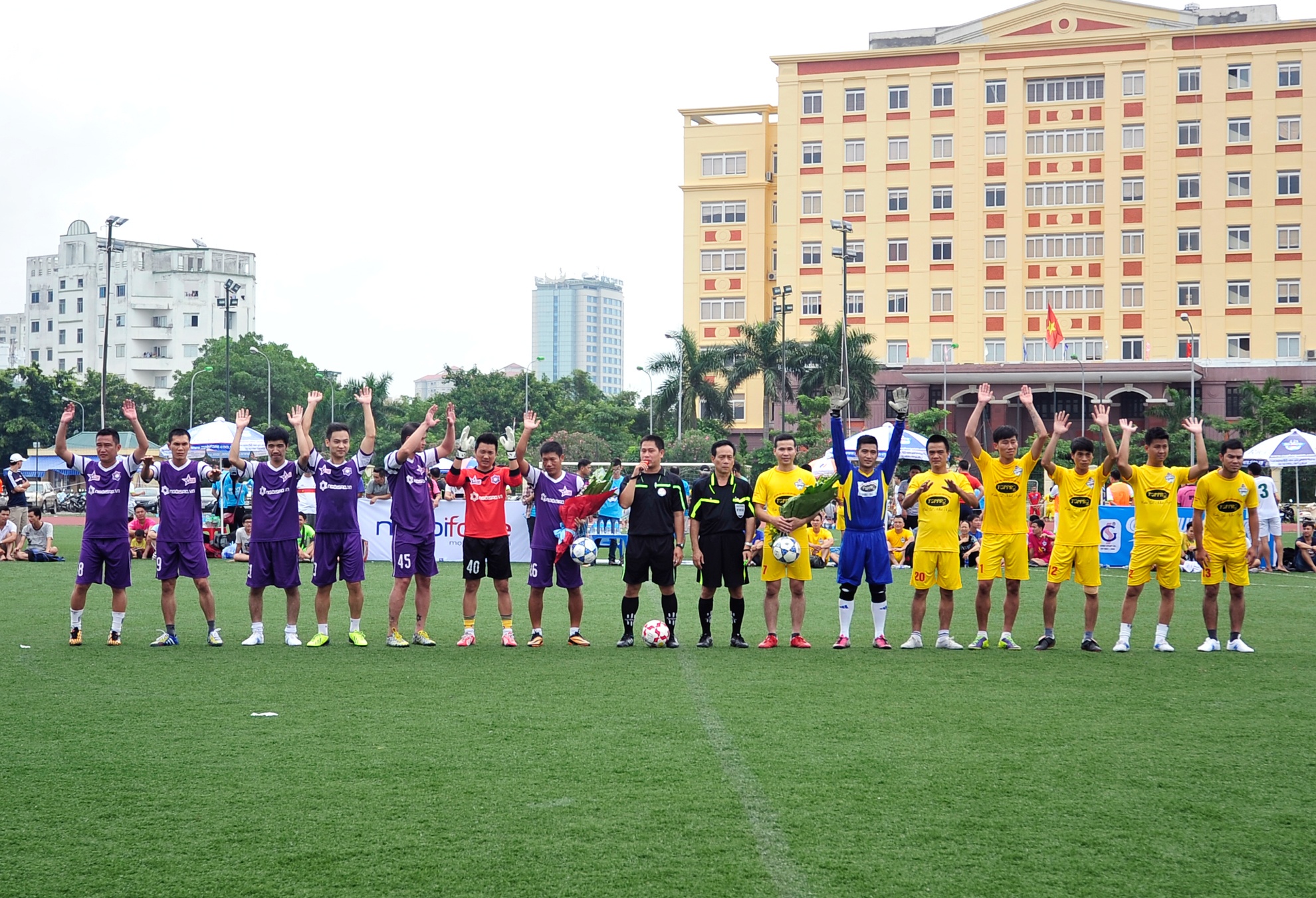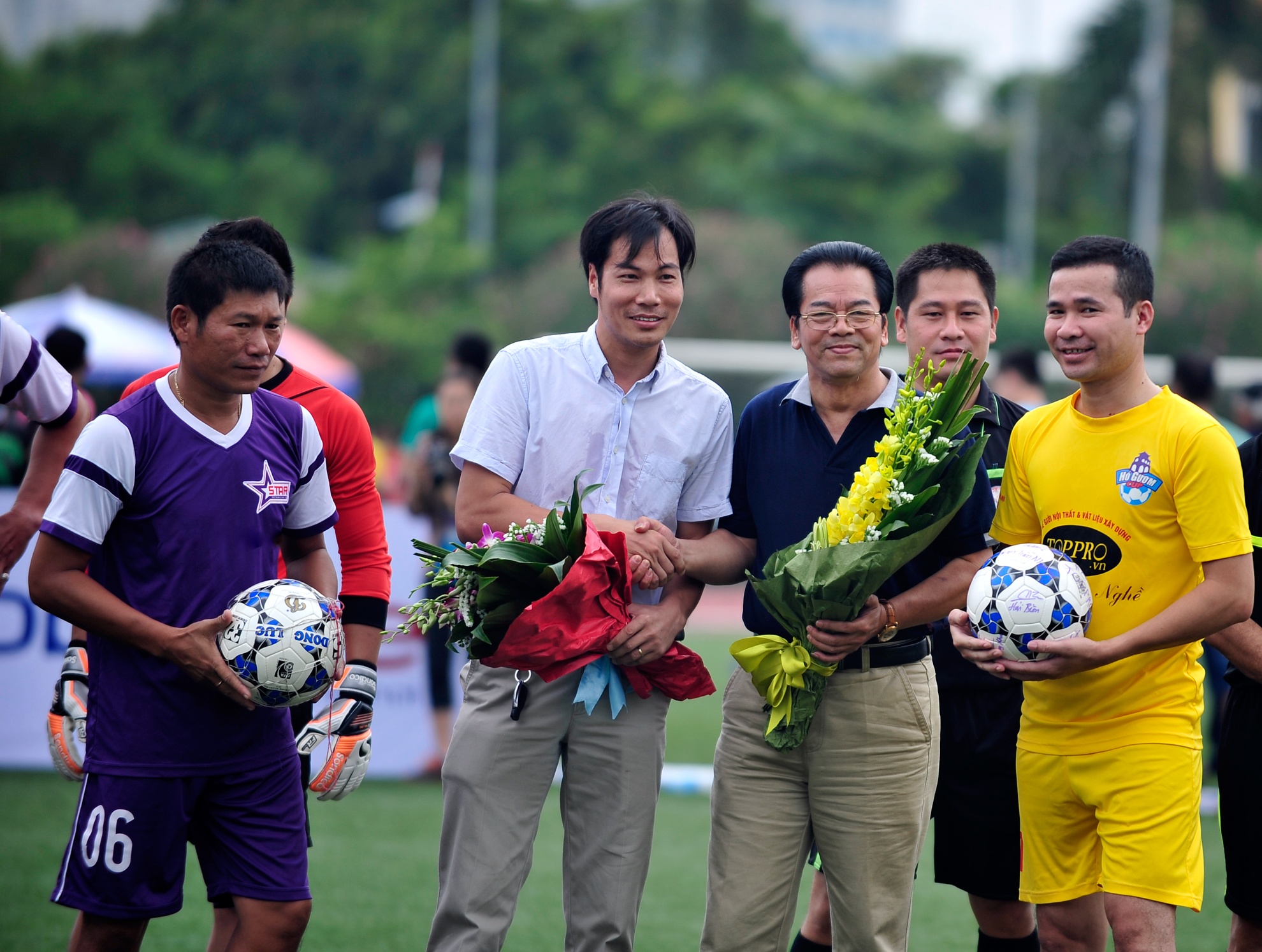Trận đấu giữa đội bóng Ngôi sao và Toppro do cha con trọng tài Nguyễn Xuân Cương cầm còi.
