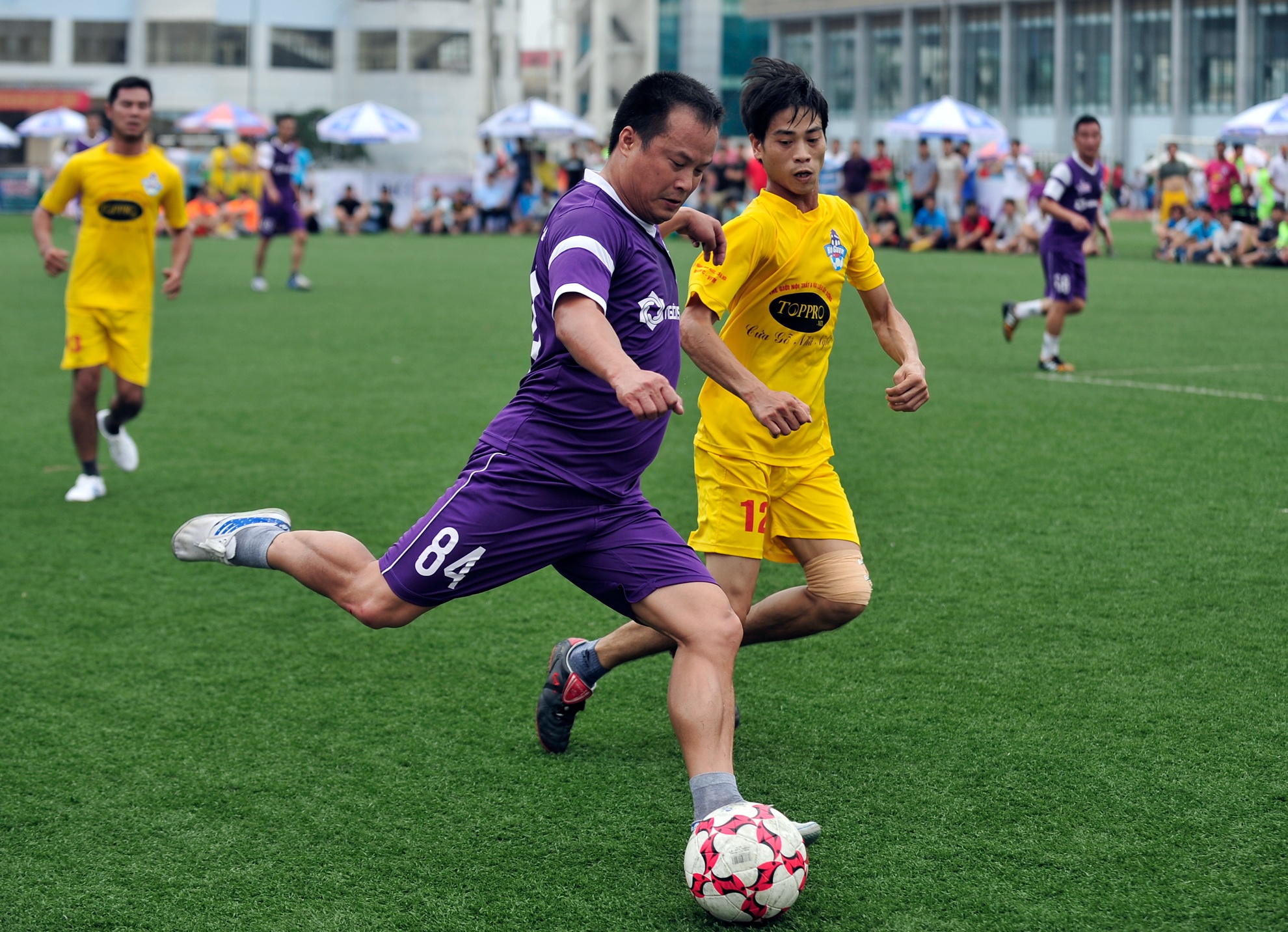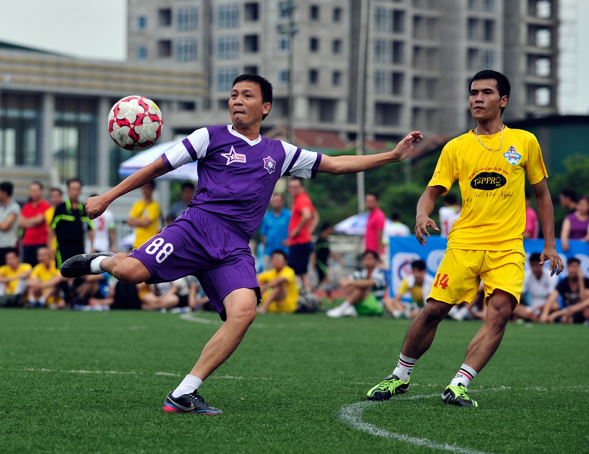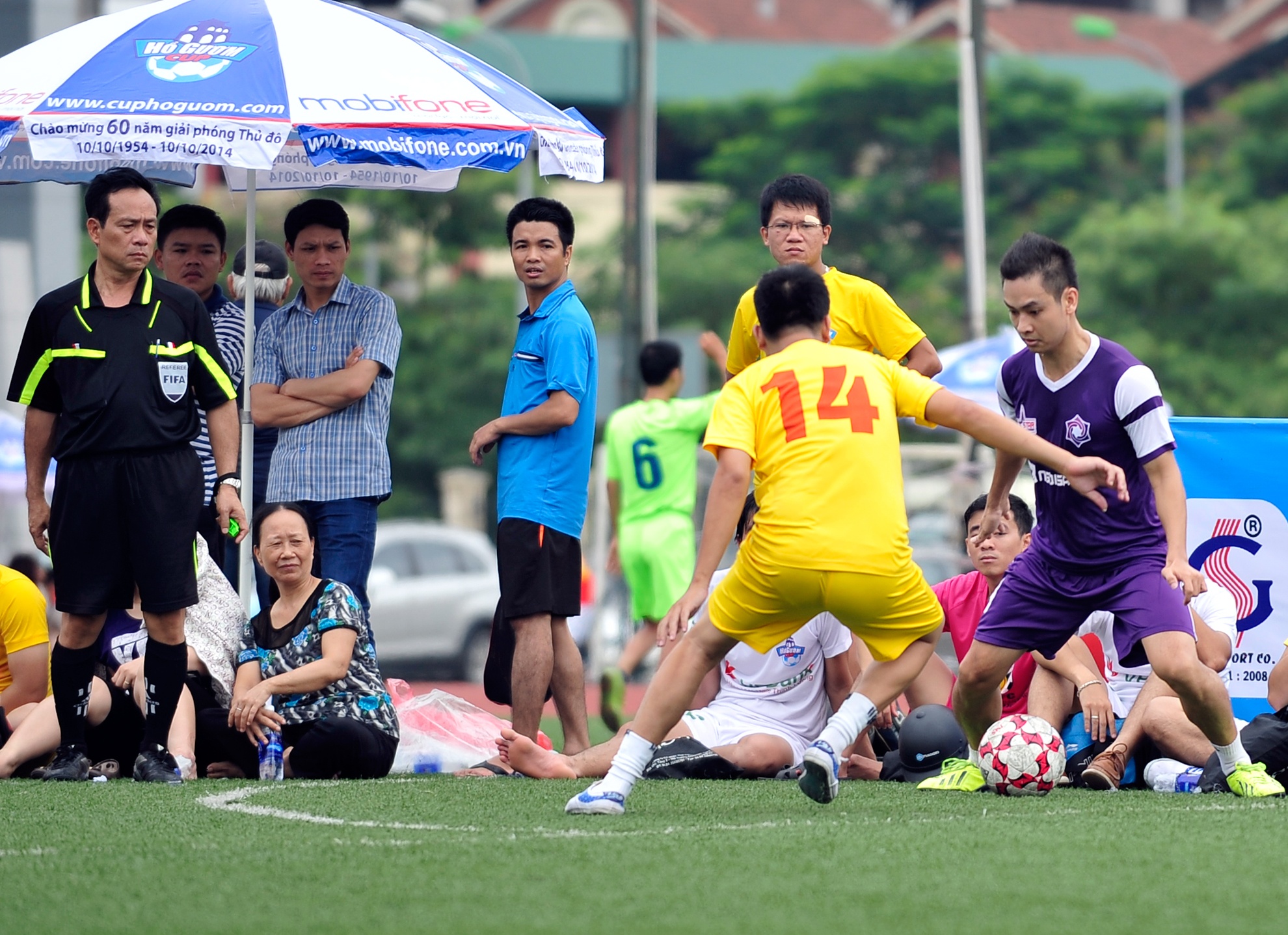 Trận đấu giữa đội bóng Ngôi sao và Toppro do cha con trọng tài Nguyễn Xuân Cương cầm còi.