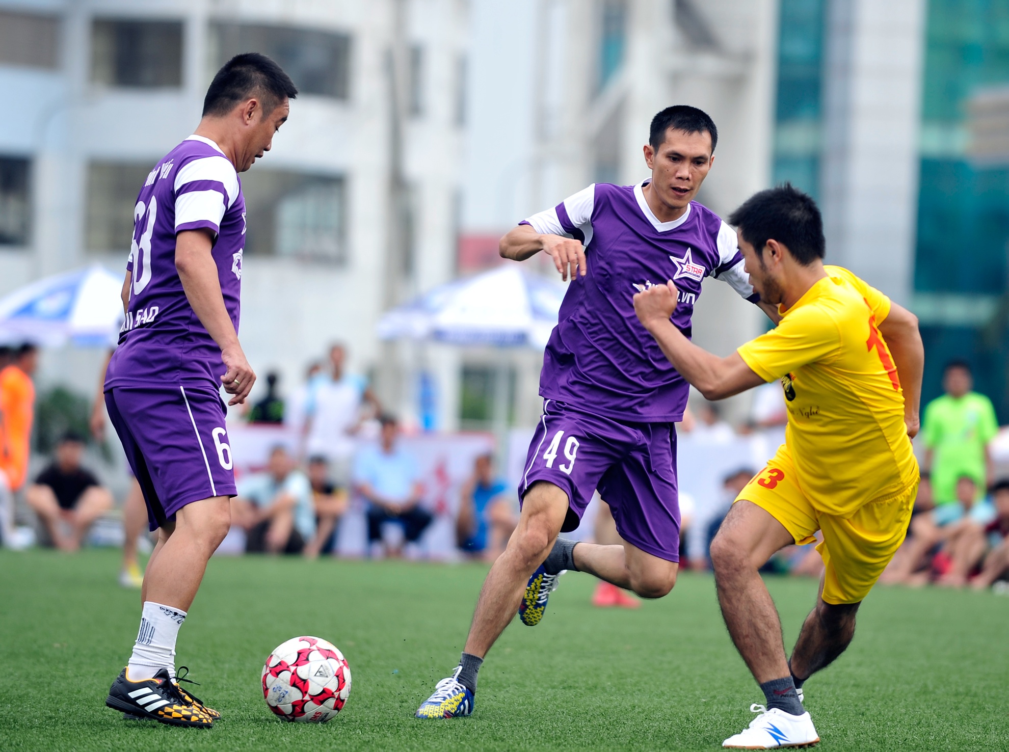 Ngay sau khi Tuấn Thành vào sân, bóng luôn trong chân các cầu thủ mặc áo tím. Pha kết hợp nhả bóng ăn ý giữa Minh Hiếu và Lưu Thanh Châu với pha sút bóng đầy kĩ thuật nhưng tiếc là bóng bay ra phía ngoài khung thành.