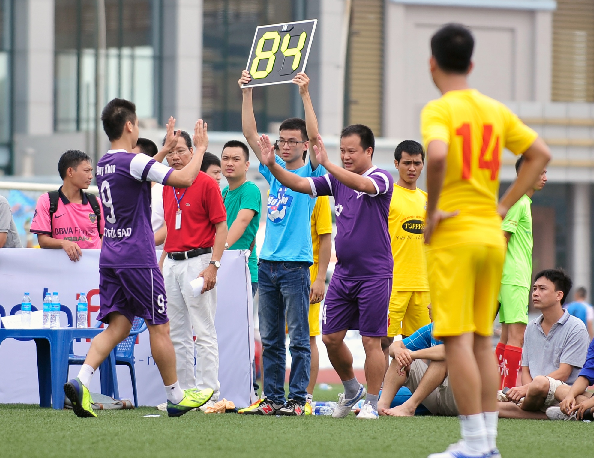 Thế trận nửa đầu hiệp 1 nghiêng về phía đội bóng Toppro với 2 bàn thắng được ghi, do vậy đội bóng ngôi sao quyết định tung Tuấn Thành vào sân thay cho Duy Khoa.