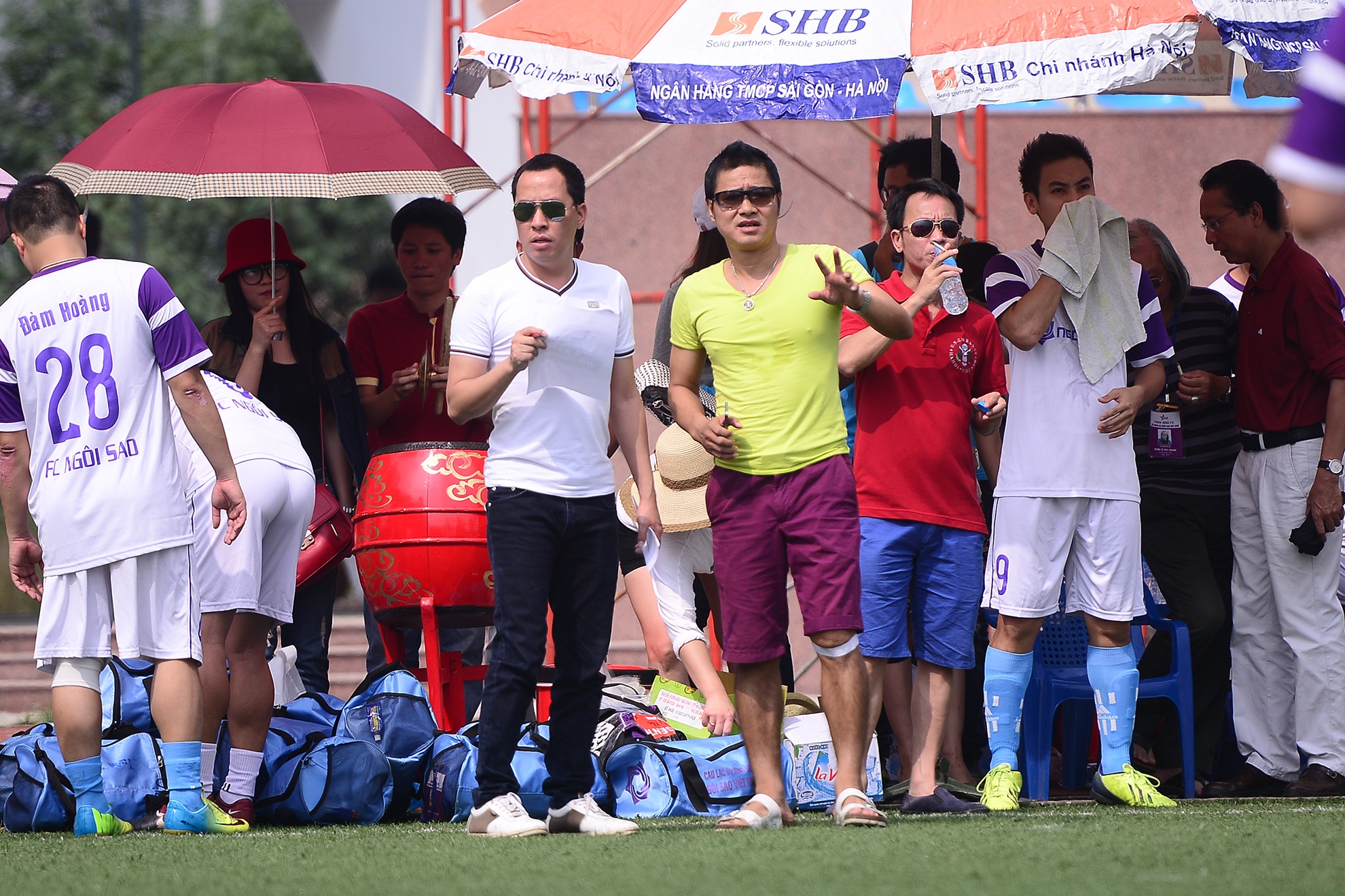 Trận cầu đinh diễn ra ở loạt trận thứ hai vào 9h50. Đáng chú ý, vòng đấu này có sự xuất hiện của cựu binh Hồng Sơn dưới vai trò chỉ đạo chiến thuật cho đội bóng Ngôi sao.