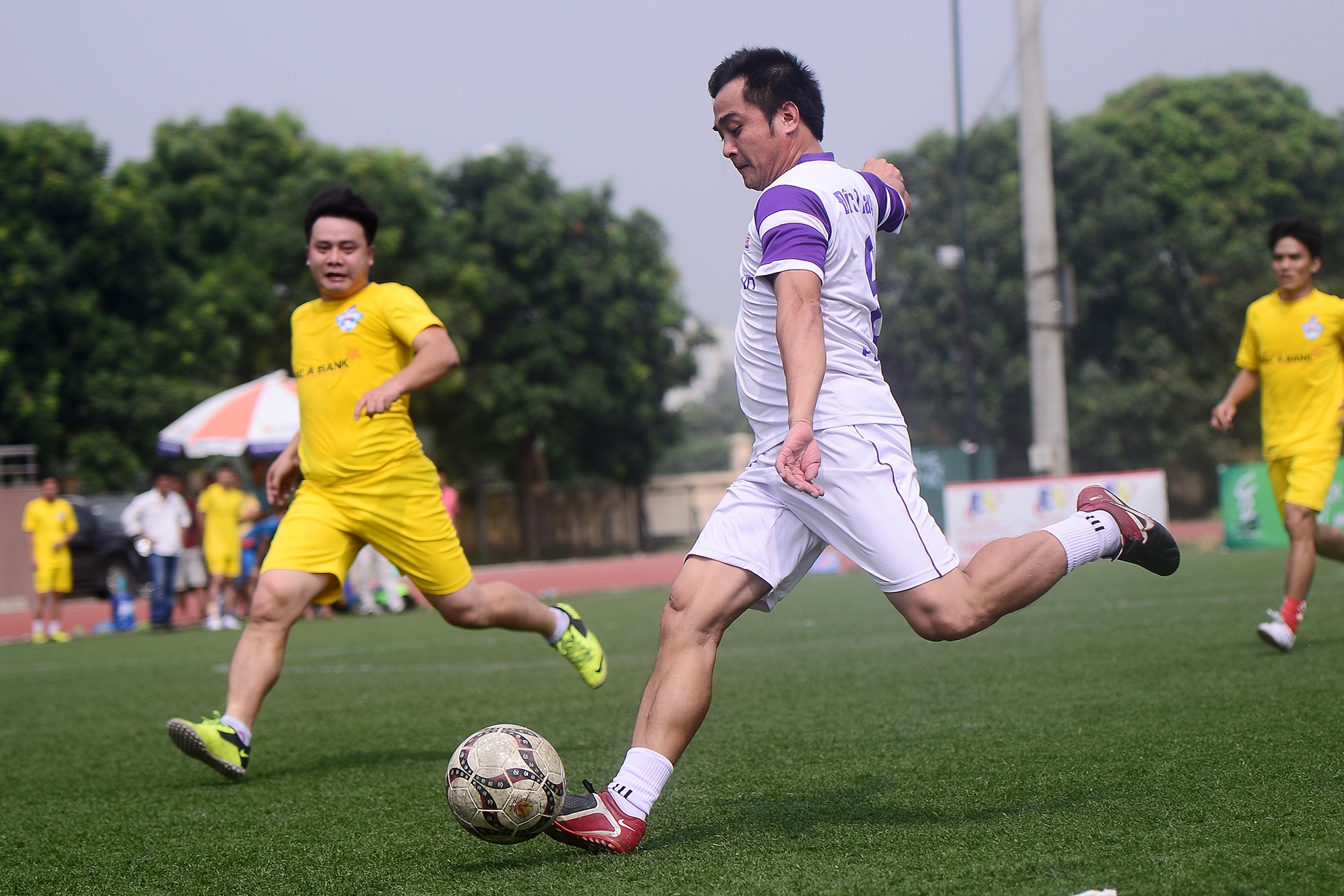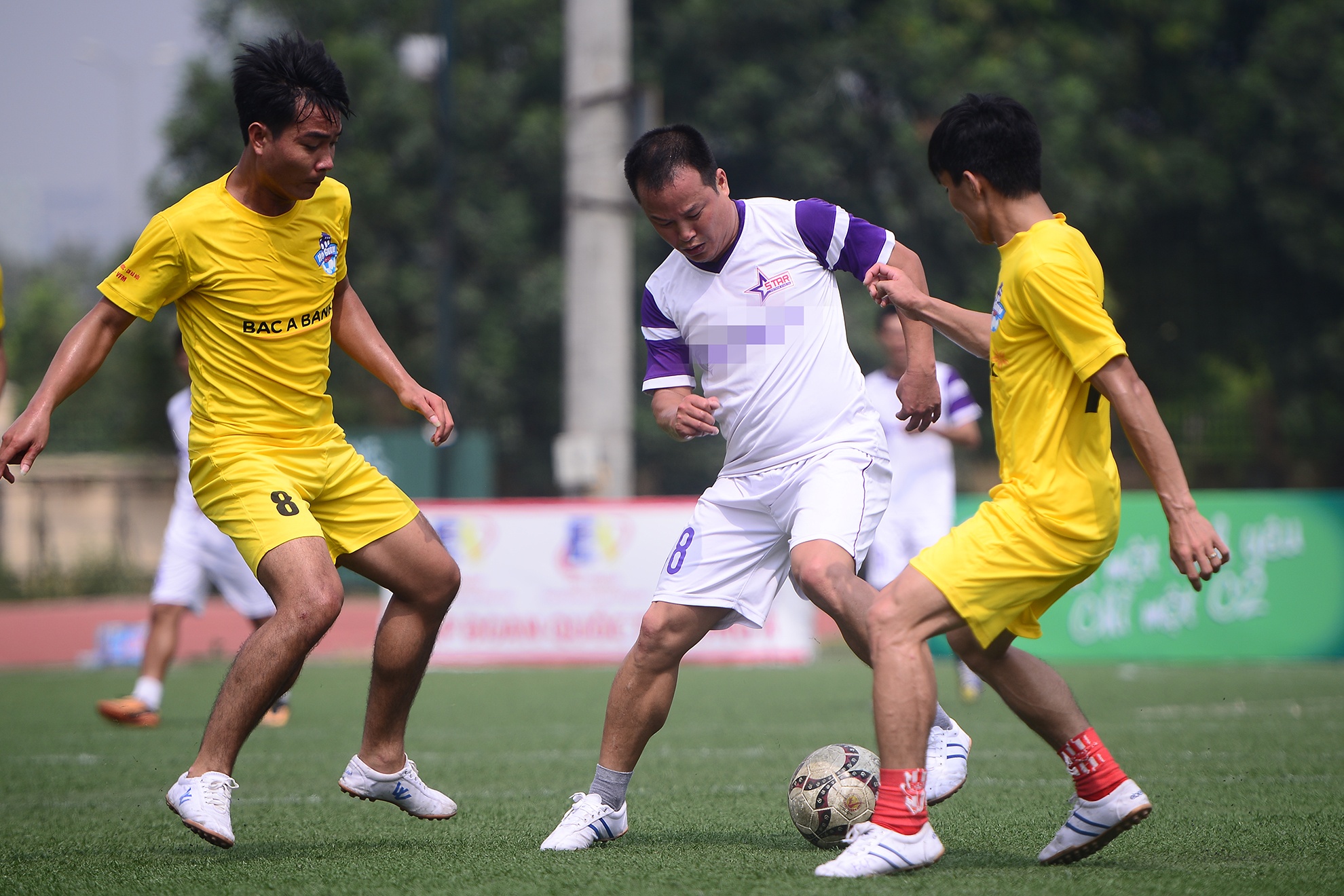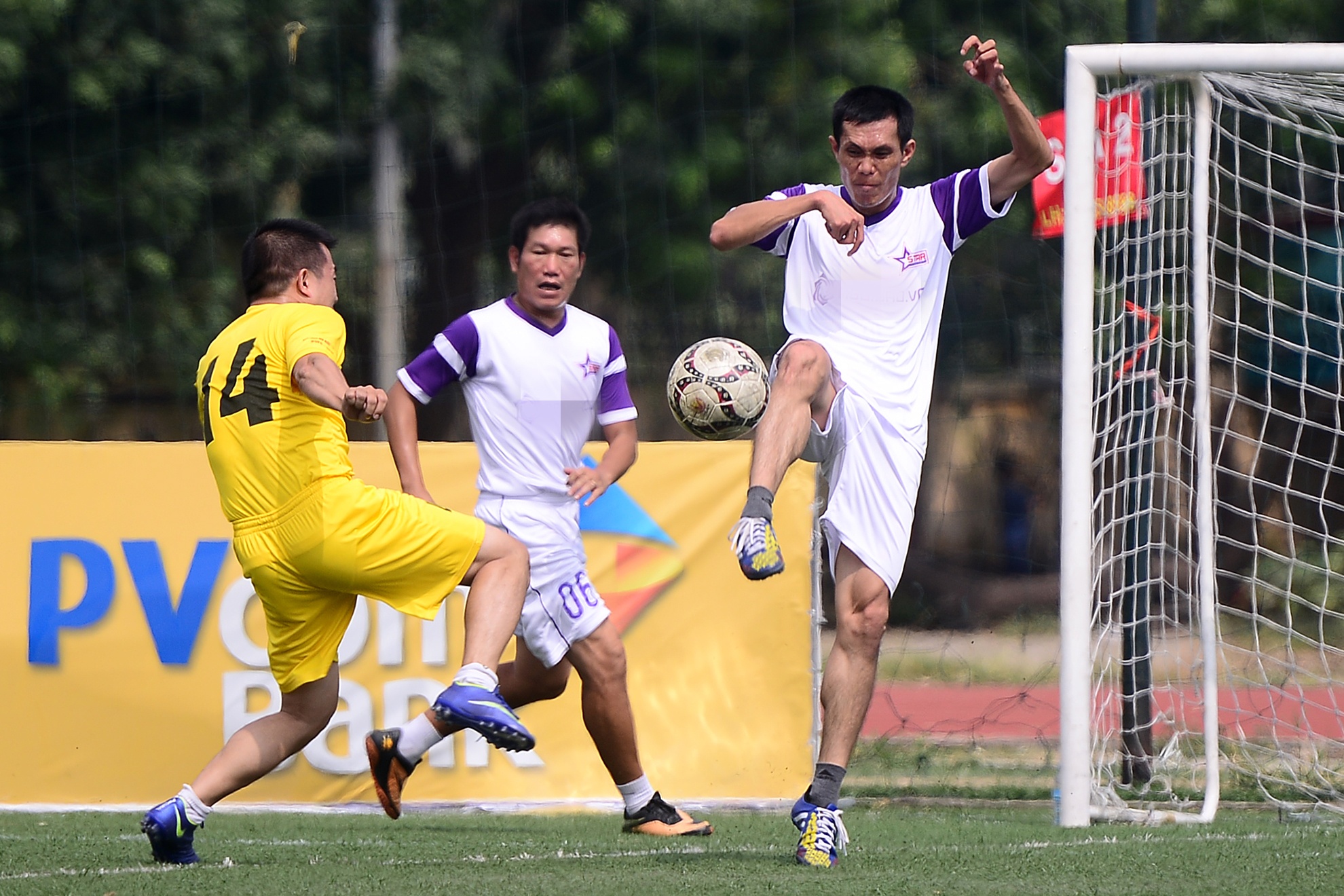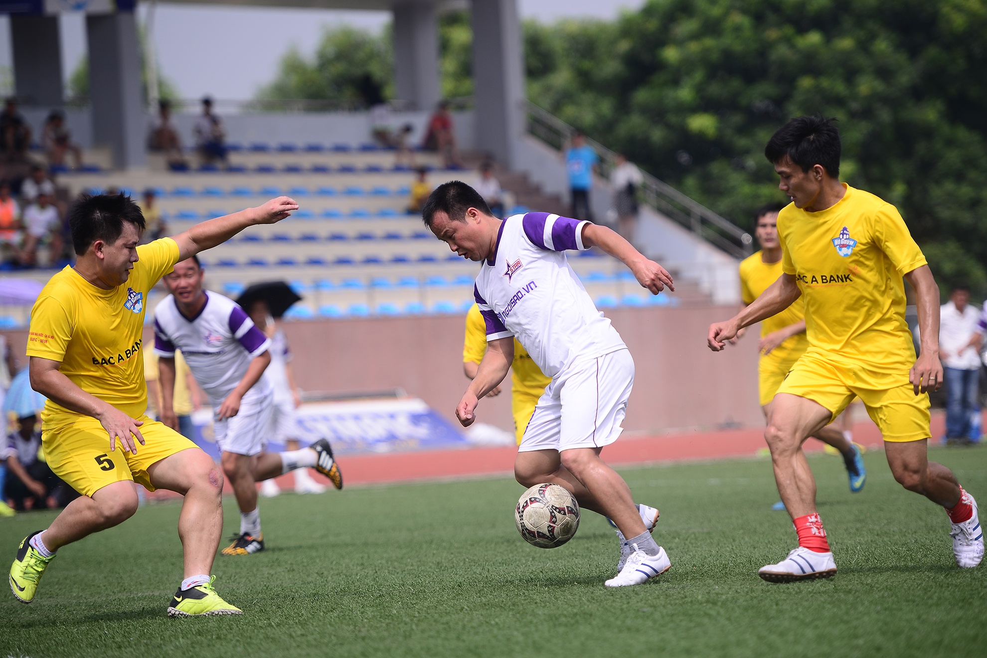 | Sáng 19/10 trên sân bóng Bộ công an, 8 trận đấu loại trực tiếp thuộc vòng 1/16 tranh cúp Hồ Gươm đã diễn ra quyết liệt. Trận đấu được mong chờ nhất là giữa hai đội Ngân hàng Bắc Á và tuyển Ngôi sao gồm các cựu binh nổi tiếng một thời. |