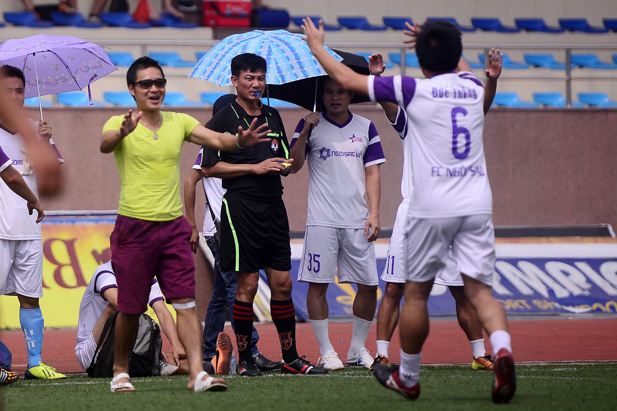 | Tuy nhiên những pha va chạm không đáng kể đã tạo cơ hội cho các cầu thủ Ngôi sao kịp câu giờ, kéo dài thời gian hết trận đấu. |