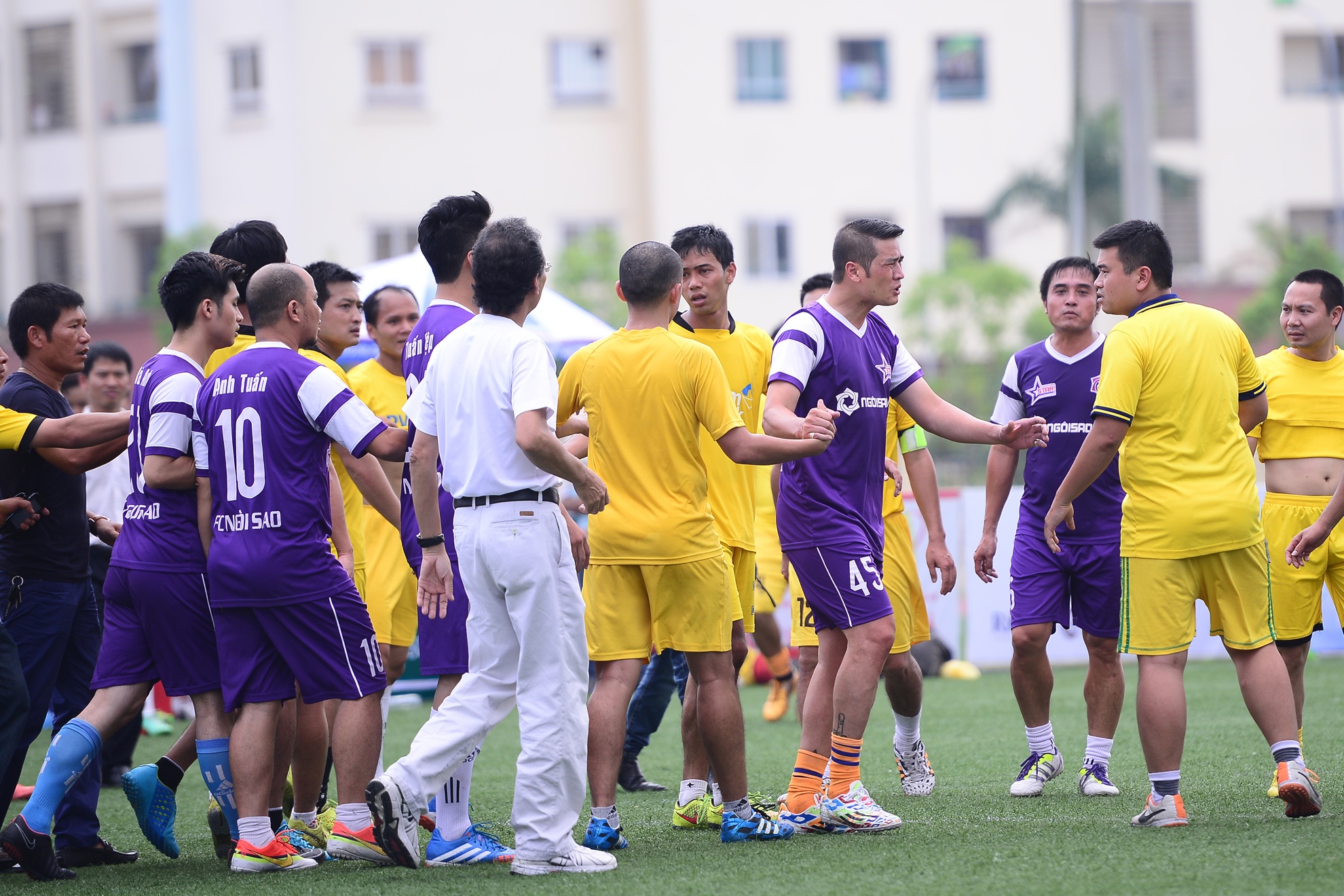 | Kết thúc trận bán kết đã suýt xảy ra xô xát khi diễn viên Anh Tuấn vào sân đã có những pha bóng hài hước cũng như phạm lỗi gây ức chế tâm lý các cầu thủ đội bạn. |