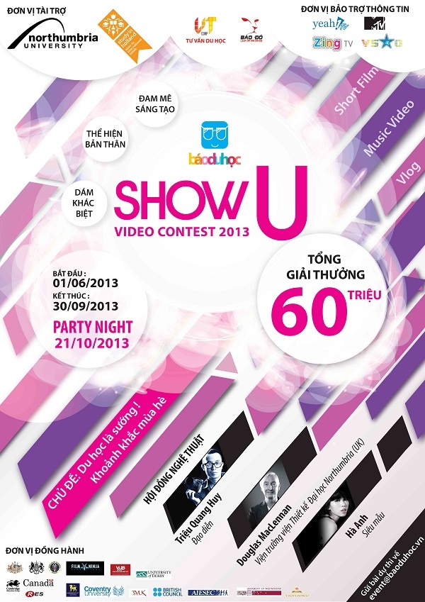 Cuộc thi Show U Video Contest được tổ chức bởi Đại học Northumbria từ Anh, văn phòng hỗ trợ du học Hà Lan Nuffic Neso và Báo Du Học. Cuộc thi còn được cổng truyền thông ZingTV làm đại diện báo chí. Những thí sinh nổi bật của cuộc thi sẽ được xuất hiện trên nhiều phương tiện truyền thông.