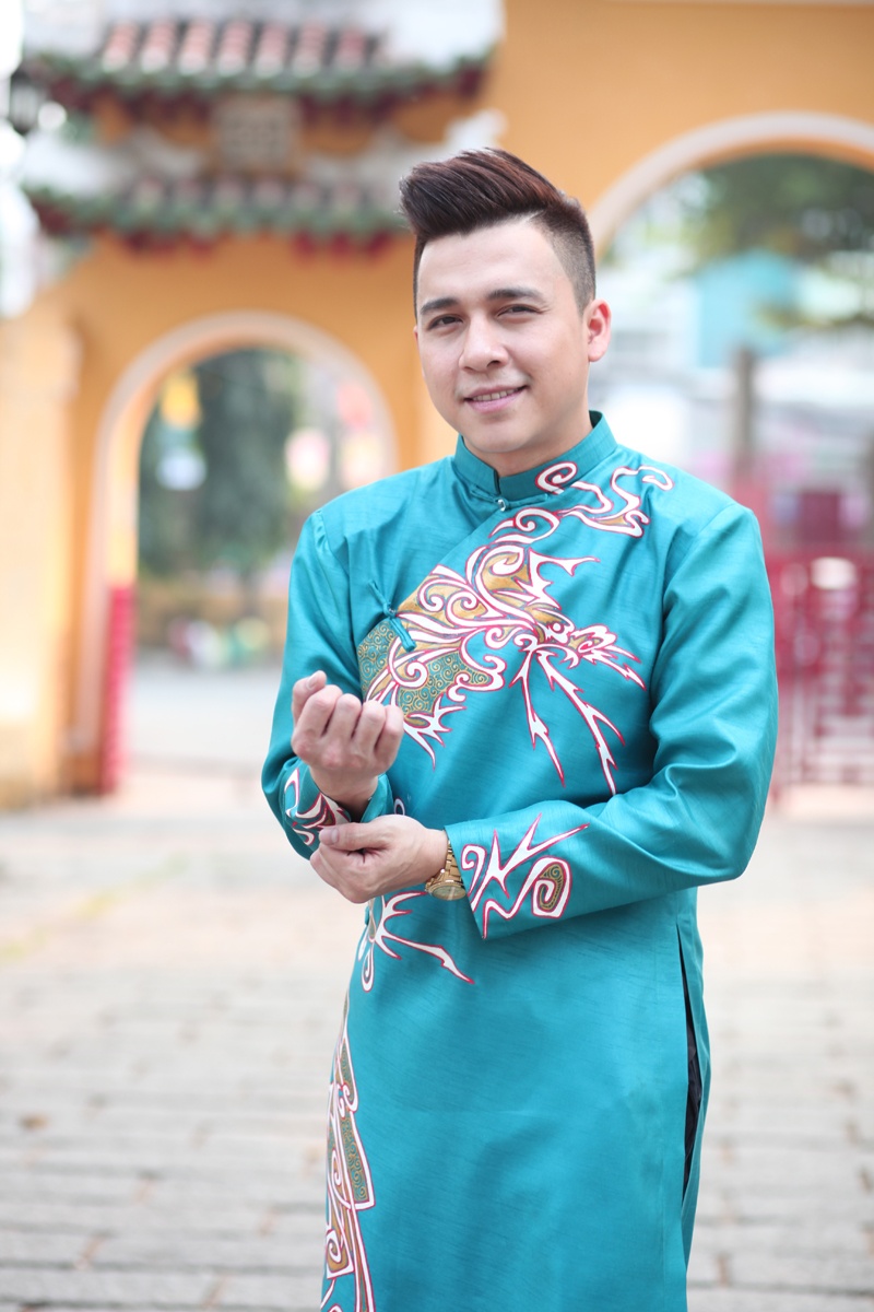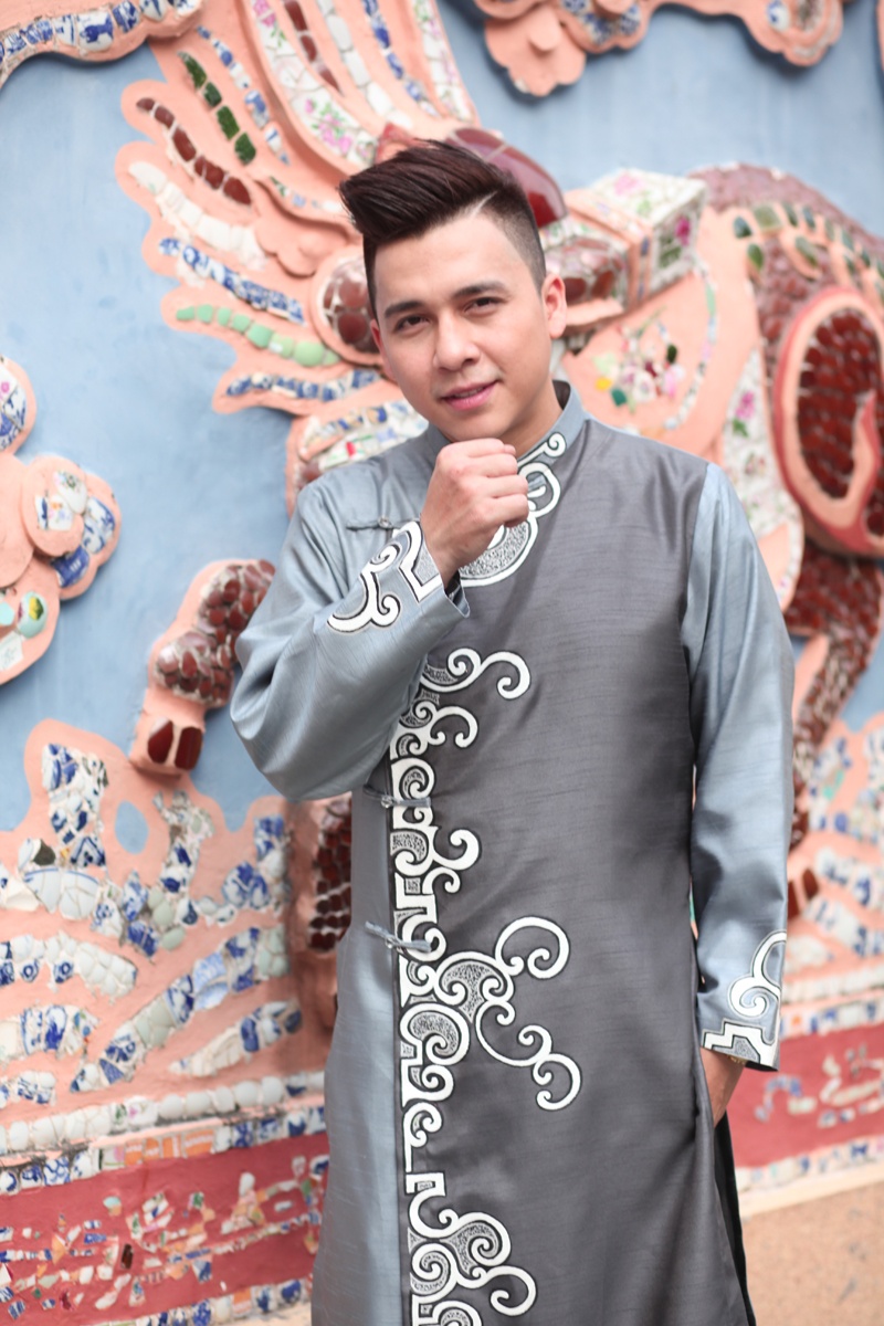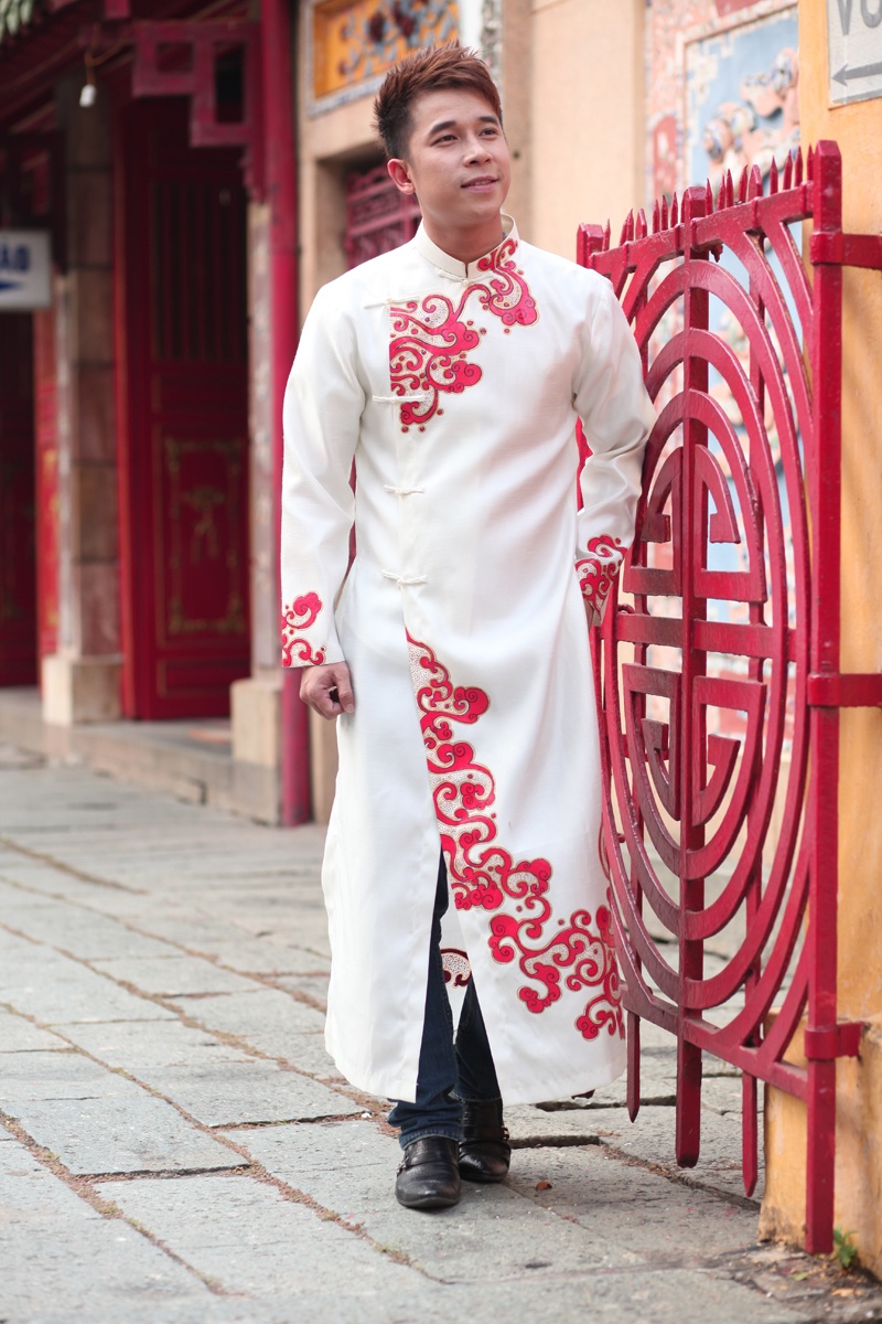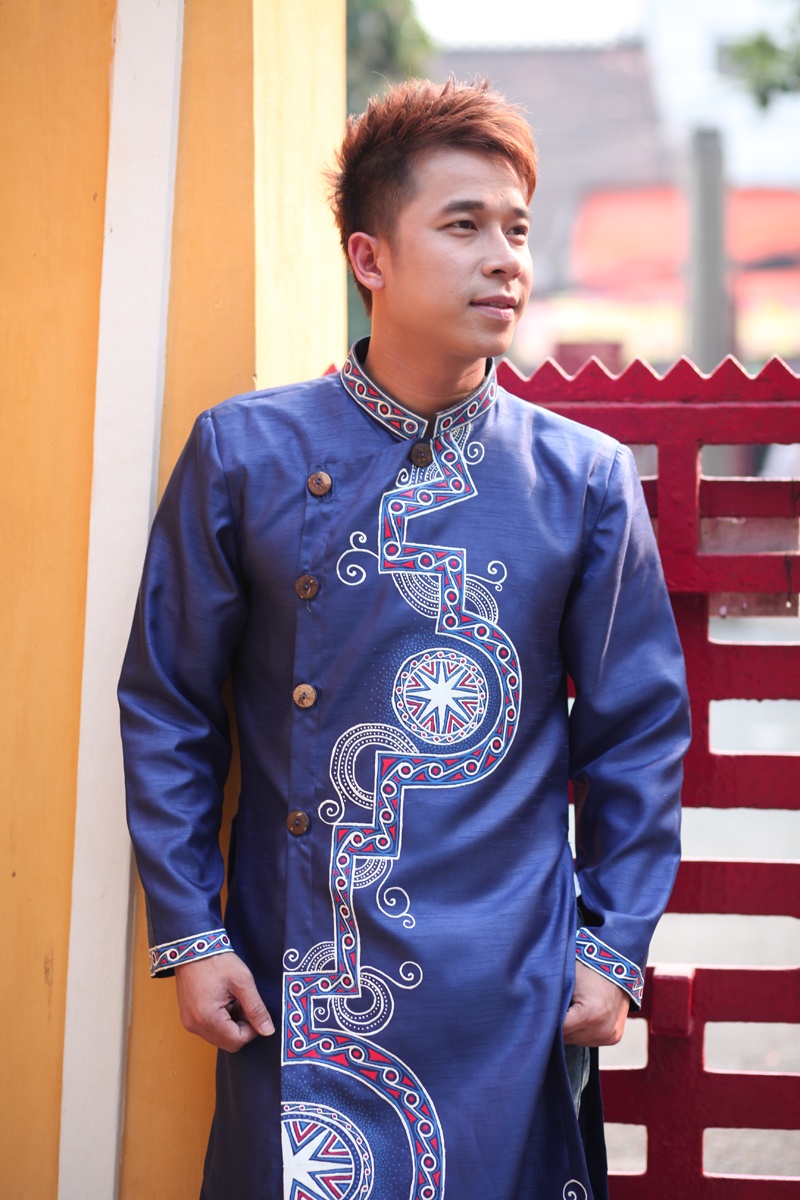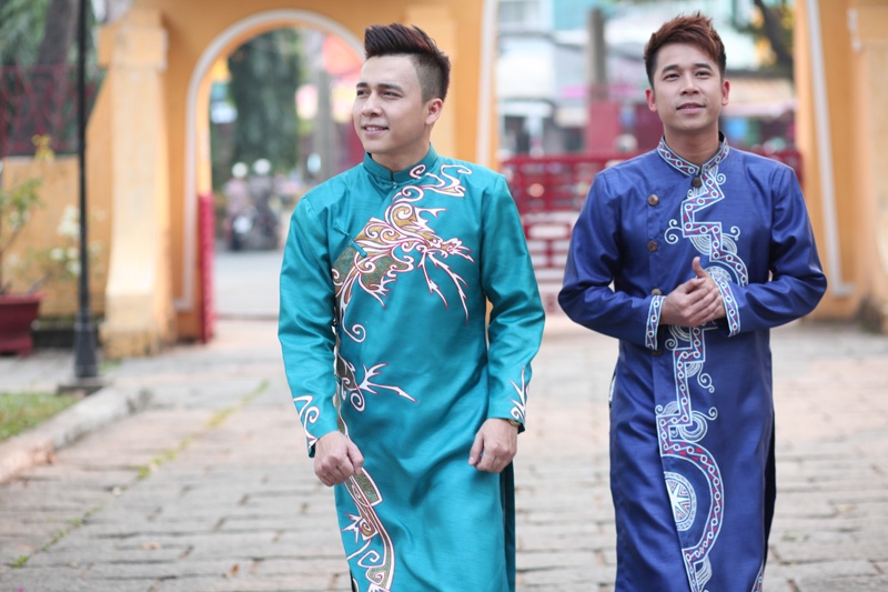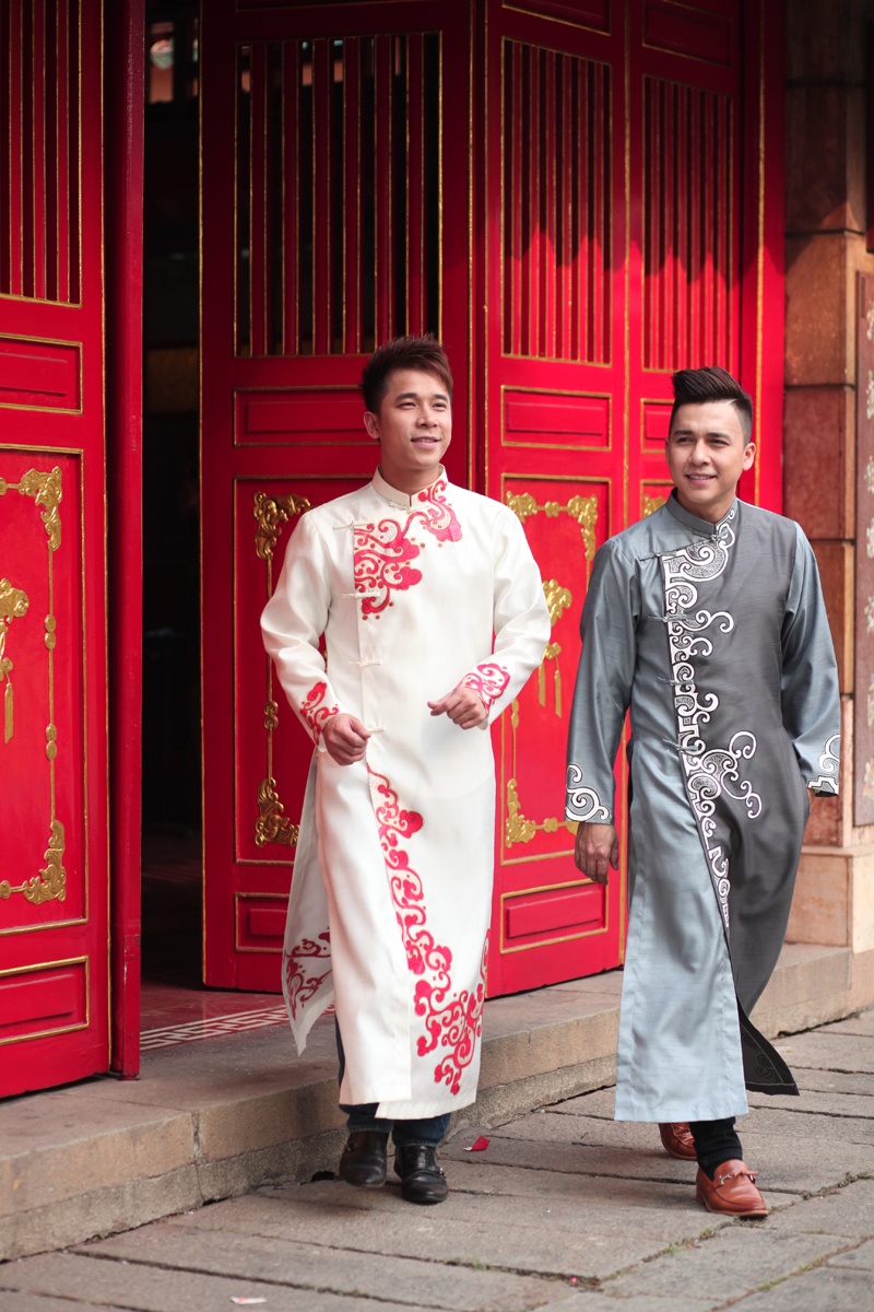 | Trai đẹp Tiến Dũng. Hai anh chàng diện những thiết kế áo dài trong bộ sưu tập mới nhất của nhà thiết kế Minh Châu. |