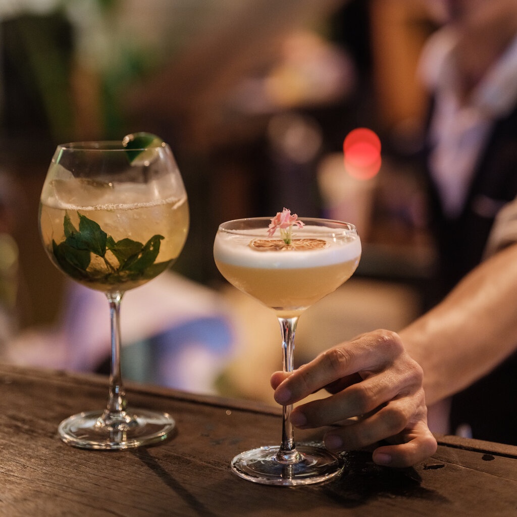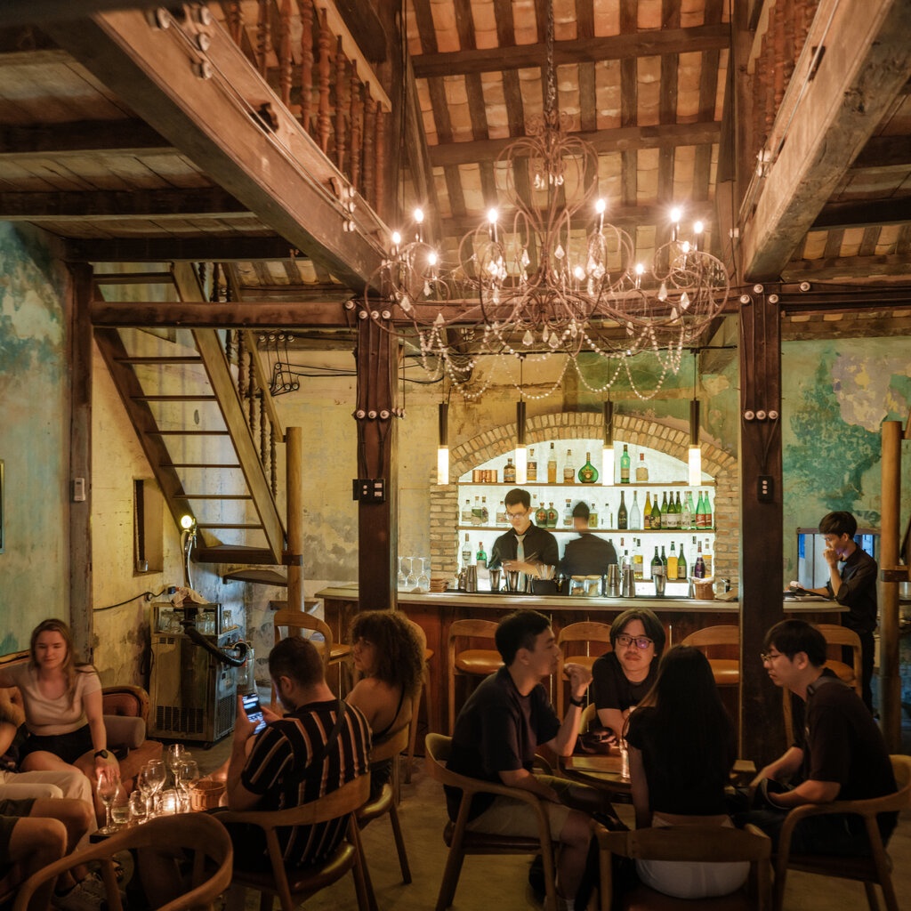 Tại đây có các quán bar trên cao gần chợ Hội An, có tầm nhìn ra sông Thu Bồn và cổ thụ lớn, không gian thoáng, nhiều gió. Thực đơn tập trung vào cocktail, đặc biệt là các loại gin pha với nguyên liệu địa phương như sả, hồi hoặc chuối kết hợp rượu gạo và rum nội địa.