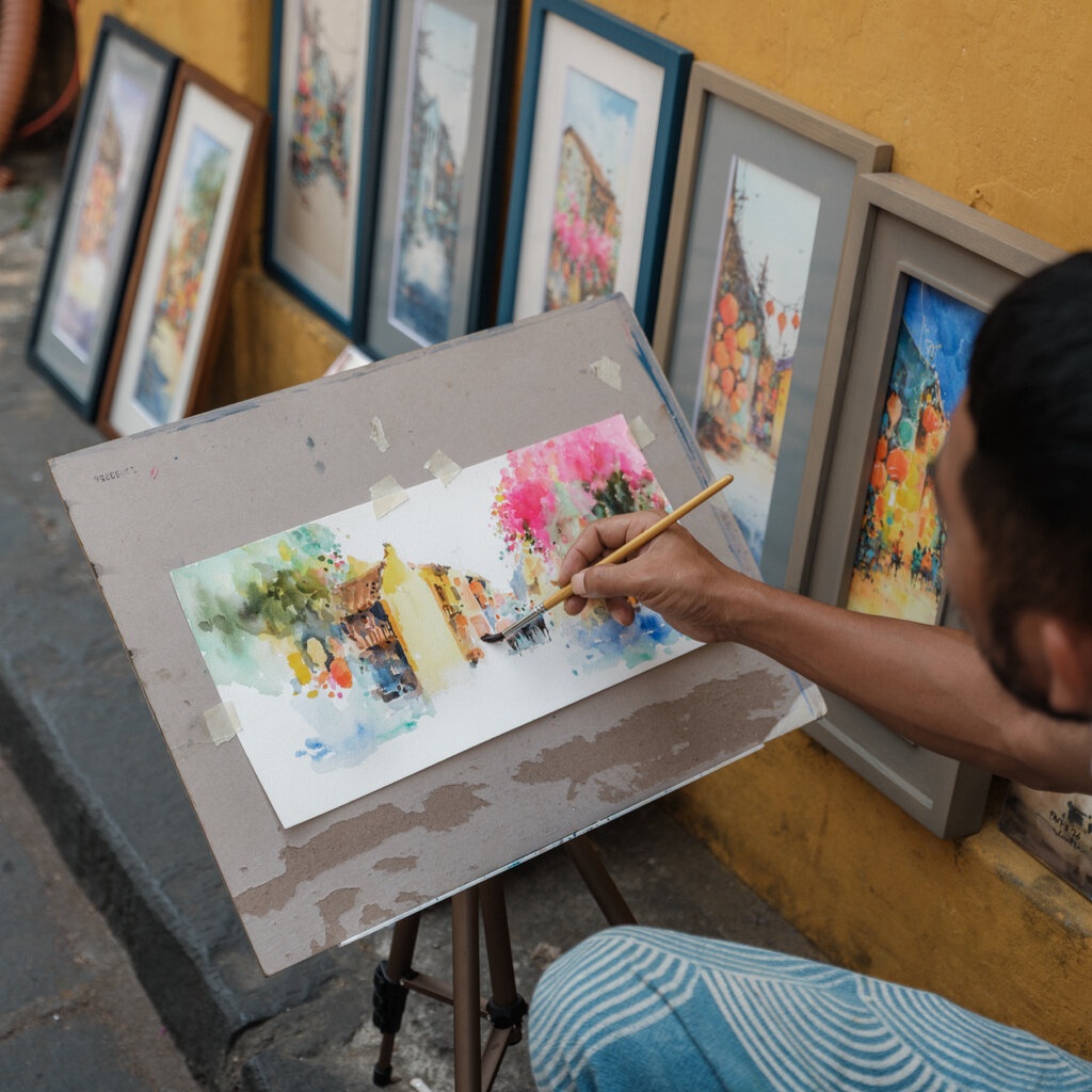 Trở lại phố cổ, du khách có thể gặp các họa sĩ vẽ tranh, hoặc ghé xưởng lụa để xem quy trình dệt thủ công.
