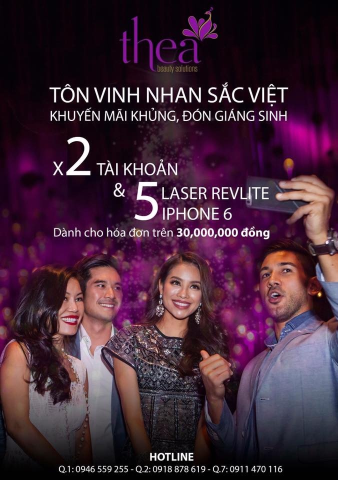 Ngoài ra, trong dịp Giáng sinh và đón năm mới, Thea còn áp dụng ưu đãi đặc biệt khi khách hàng mua gói liệu trình 40 triệu đồng sẽ được tặng gói Cocktail làm đẹp trị giá 50 triệu đồng (gồm các dịch vụ: BBL trẻ hóa, tắm trắng Pura spa, trẻ hóa âm đạo Fotona, tan mỡ, săn da Exilis).