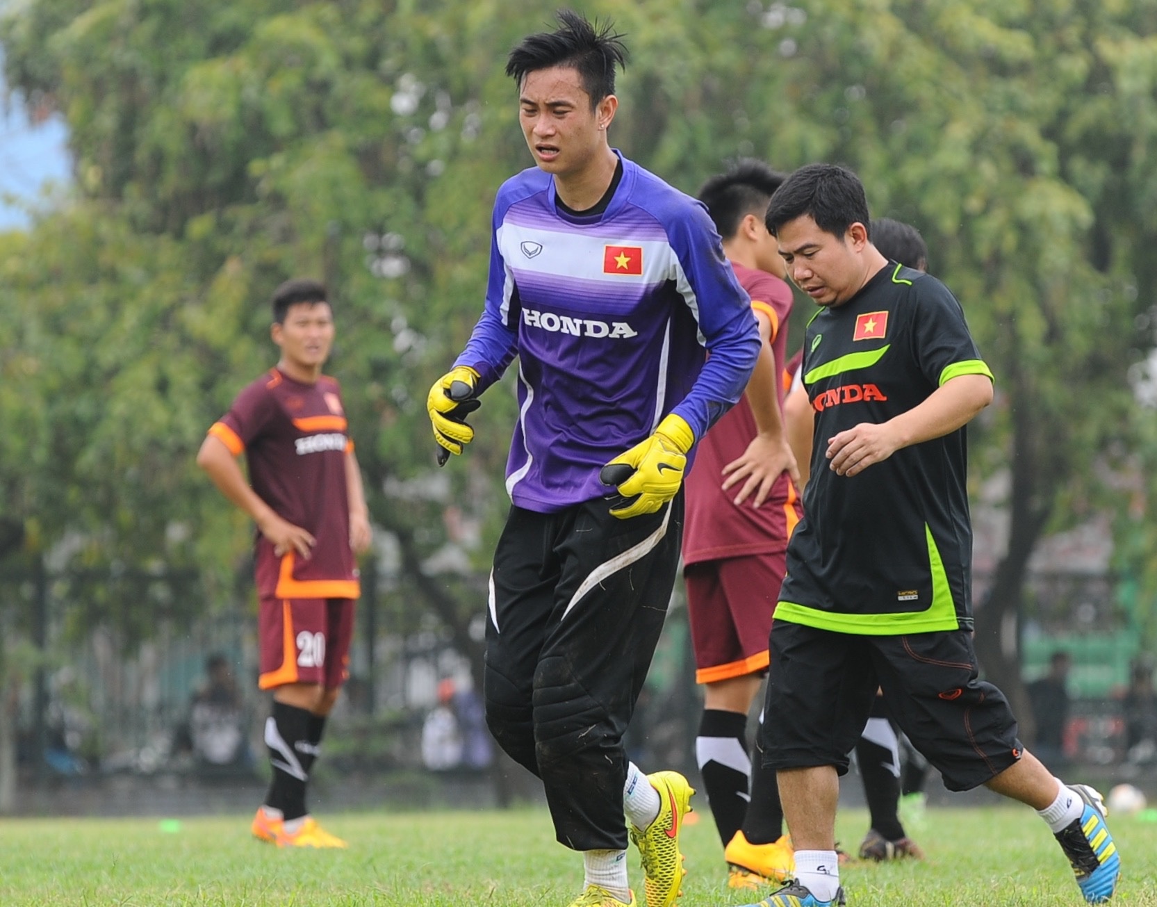 | Thủ môn Hoài Anh là người thứ tư gặp phải chấn thương trong buổi sáng nay của ĐT Olympic Việt Nam. Trong một pha băng ra cản phá bóng, cổ chân phải của Hoài Anh bị đau khiến anh phải kết thúc sớm buổi tập. |