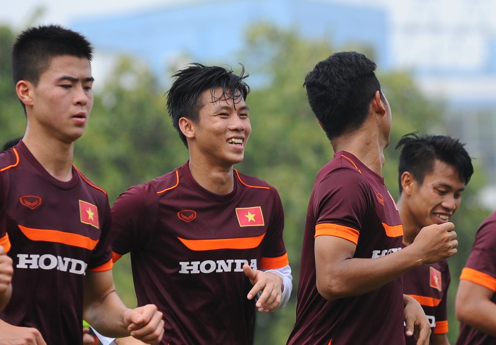 | Cầu thủ Olympic Việt Nam cười sảng khoái sau những buổi tập nặng. Sau 6 buổi tập liên tiếp, chiều nay (27/2) HLV Miura cho các học trò nghỉ xả hơi để hồi phục thể lực. Buổi tập tiếp theo của ĐT Olympic Việt Nam diễn ra lúc 9h sáng mai (28/2). |