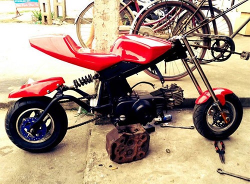 Xuất phát từ niềm đam mê những mẫu xe mô tô phân khối lớn của hãng Ducati, tận dụng những vật liệu cũ, cậu học sinh lớp 12 tại trường THPT C Hải Hậu (Nam Định) đã cho ra đời mẫu xe máy có kiểu dáng khá bắt mắt.
