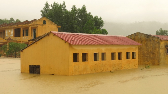 | Người dân xã Tân Hóa (Minh Hóa, Quảng Bình) trèo lên nóc nhà tránh lũ (ảnh chụp chiều 20/9). |