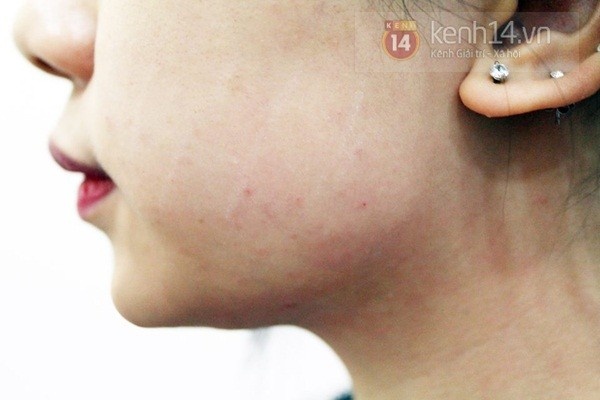 | Tiêm xong trên mặt Hạt Mít vẫn còn những nốt đỏ, nhất là ở những vùng da mỏng. Nhưng ngay hôm sau cô có thể trang điểm bình thường và các nốt sẽ biến mất trong một tuần. Còn bây giờ chỉ phải chờ một tháng nữa để khuôn mặt nhỏ dần lại mà không cần đến phẫu thuật đau đớn. |