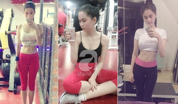 | Nổi tiếng với số đo 3 vòng "chuẩn từng centimet", ít ai biết rằng Ngọc Trinh là một trong những ngôi sao chăm chỉ tới phòng tập nhất nhì Vbiz. Trang phục ưa thích của người đẹp vẫn là quần dáng quần lửng bó và áo ngực thể thao khoe vòng eo 58cm đáng mơ ước. |