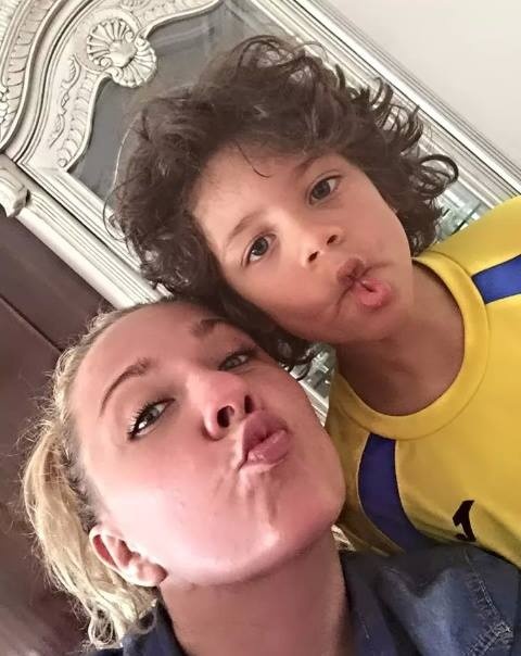 | Vợ con Marcelo chu môi tạo dáng đáng yêu. |