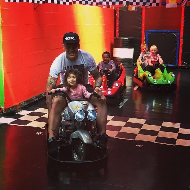| Gạt scandal tình ái sang một bên, ngôi sao M.U - Marcos Rojo đưa con gái Morena tới khu vui chơi giải trí dành cho trẻ em. |