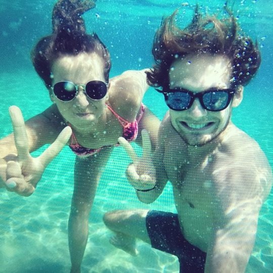 | Daley Blind và "một nửa" xinh đẹp Candy nhí nhảnh chụp ảnh dưới nước. |