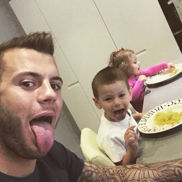 | Wilshere (Arsenal) và các con hài hước chụp ảnh trước bữa ăn. |