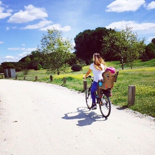 | Bà xã Emma của Bale chở con gái Alba Violet đi dạo bằng xe đạp, tận hưởng cuộc sống yên bình tại Madrid. |