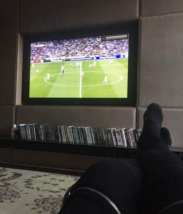 | Oezil nằm dài xem trận đại chiến giữa Real Madrid - Atletico và không quên gửi lời chúc mừng tới đồng đội cũ: "Chúc mừng những người bạn cũ của tôi, Real". |