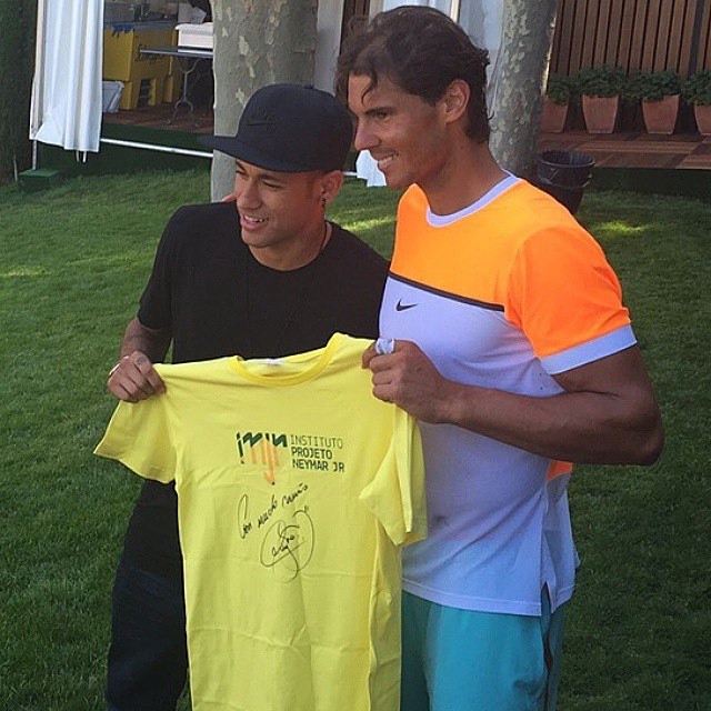 | Neymar bất ngờ xuất hiện trên hàng ghế khán giả để cổ vũ cho Rafael Nadal tại giải Barcelona Open và không quên chụp ảnh cùng tay vợt số 1 thế giới. |