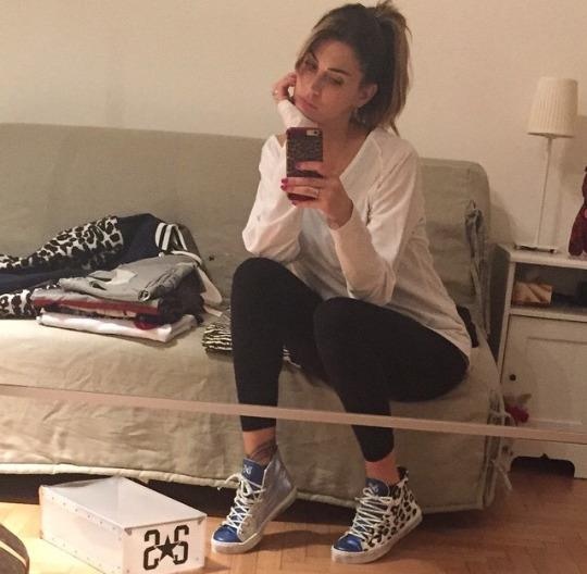 Người đẹp Melissa – bạn gái của Boateng xinh đẹp tạo dáng trước gương. |
