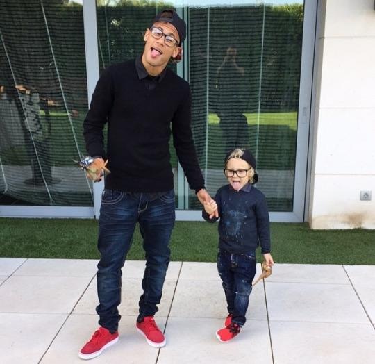 | Hình ảnh hài hước, đáng yêu của cha con ngôi sao người Brazil Neymar khiến người hâm mộ thích thú. |