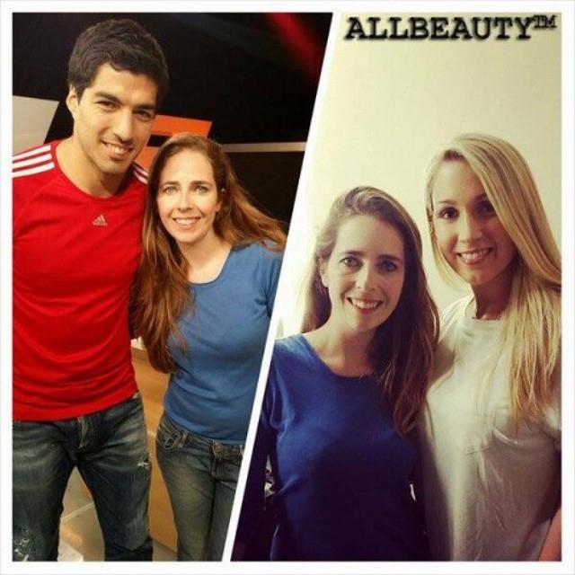 Vợ chồng Suarez thân thiện chụp hình cùng người hâm mộ. |