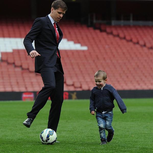 Con trai Jack Wilshere chơi bóng cùng đồng đội của bố là thủ môn Wojciech Szczesny. "Hai người đàn ông thực thụ" - Wilshere đăng kèm lời chú thích cho bức hình. |