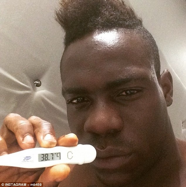 | Balotelli khoe ảnh bị sốt 38,7 độ sau tin đồn anh giả ốm để vắng mặt trong trận tứ kết FA Cup vừa qua. Dù cáo bệnh nhưng Balotelli lại bị bắt gặp khi đang trong một hộp đêm ngay sau trận thua 1-4 của Liverpool trước Arsenal. |