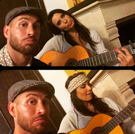 Ramos và cô bạn gái Pillar vui vẻ đàn hát cùng nhau. |
