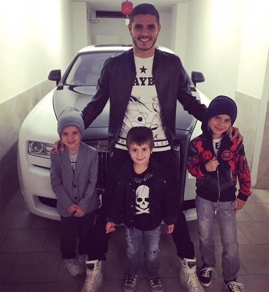 | "Cha dượng" Mauro Icardi rất yêu chiều 3 cậu con trai riêng của vợ. |