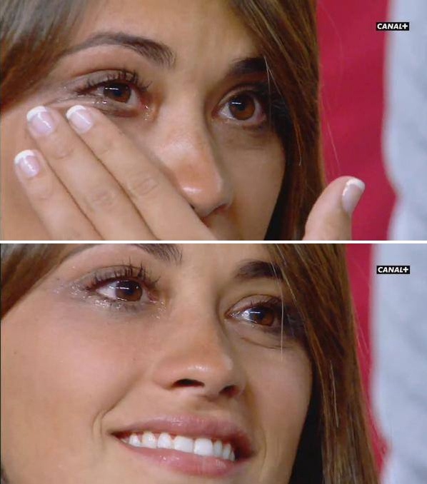 | Nụ cười và giọt nước mắt hạnh phúc lăn dài trên gương mặt xinh đẹp của Antonella - bạn gái Messi khi anh ghi bàn. Không chỉ là bạn đời, là mẹ của các con anh, Antonella còn là người phụ nữ thầm lặng hy sinh phía sau thành công của M10. |